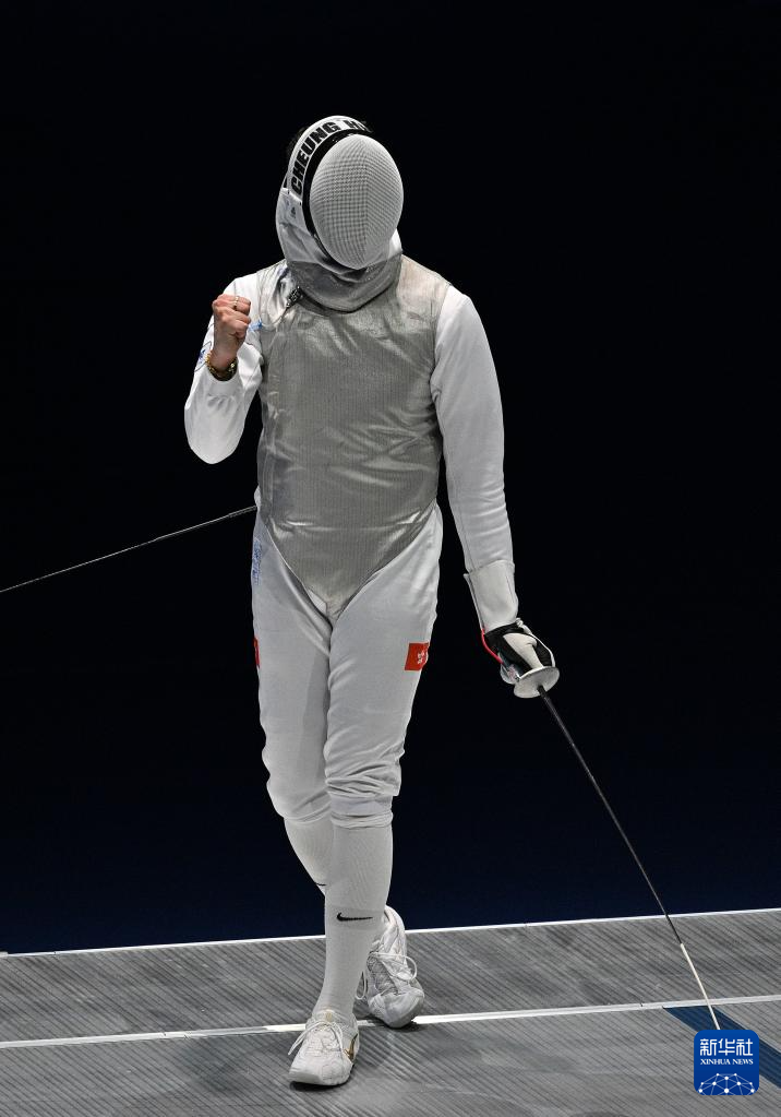 11月16日,香港队选手张家朗在比赛中庆祝得分。
