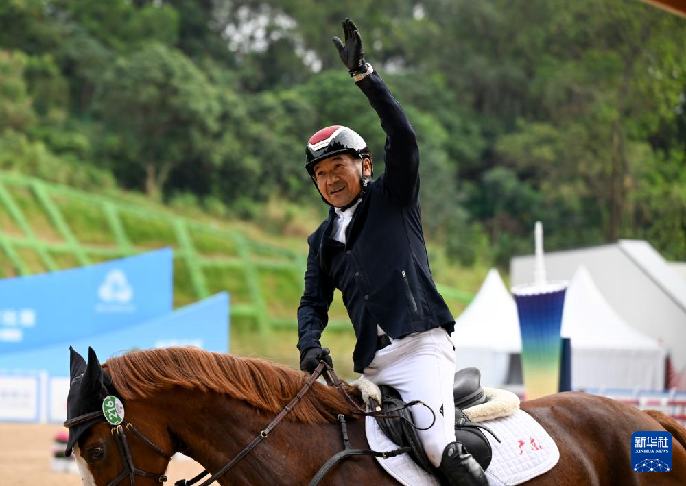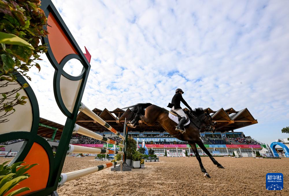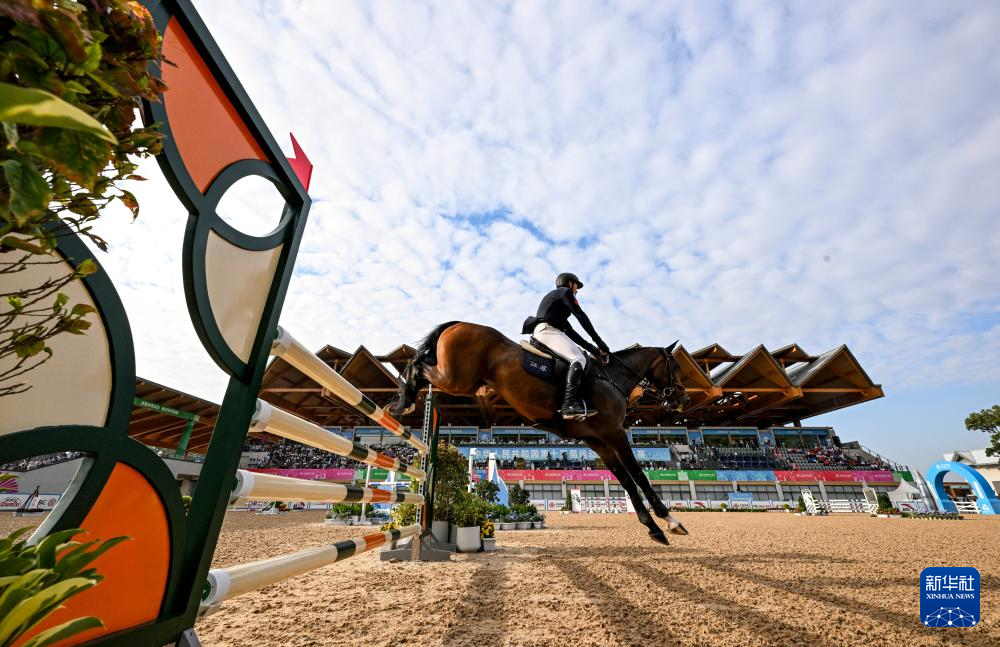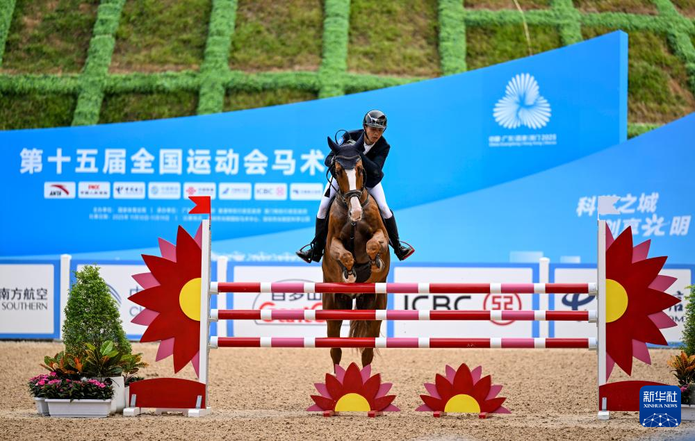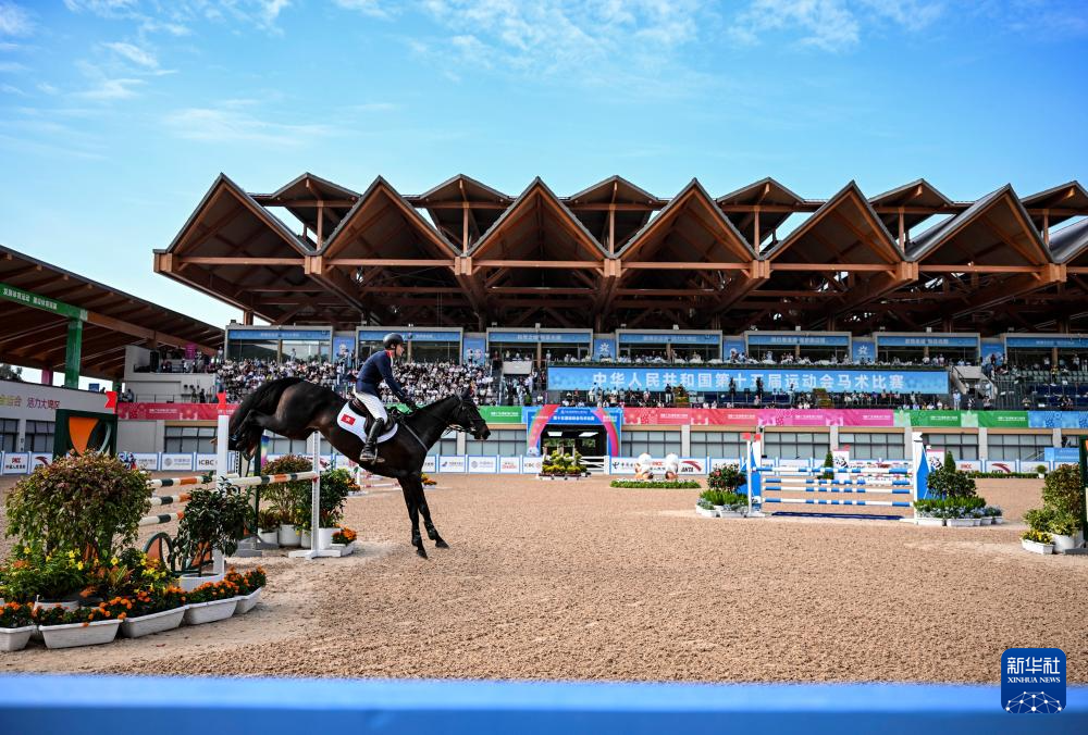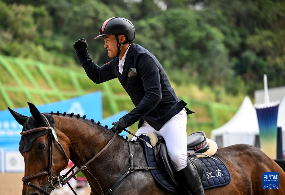 当日,第十五届全国运动会马术三项赛个人赛场地障碍决赛在广东深圳举行。
