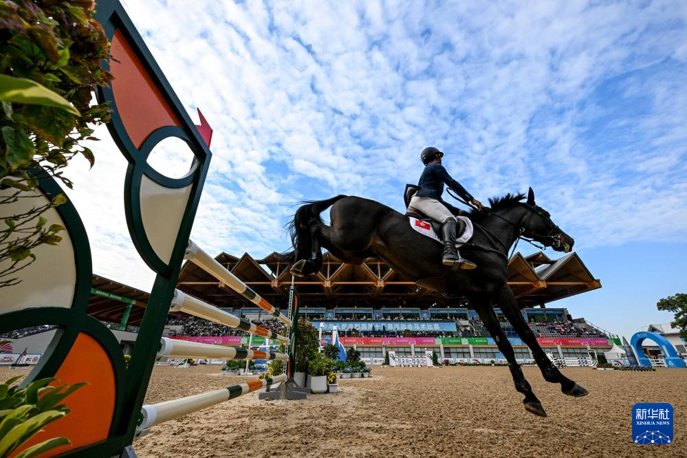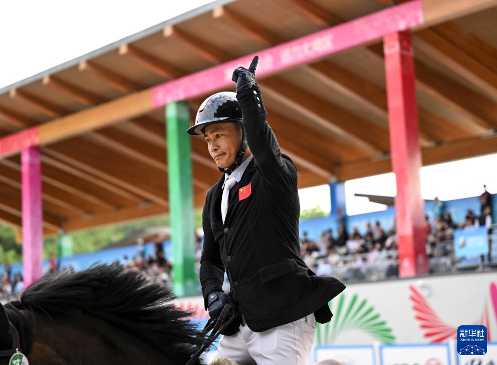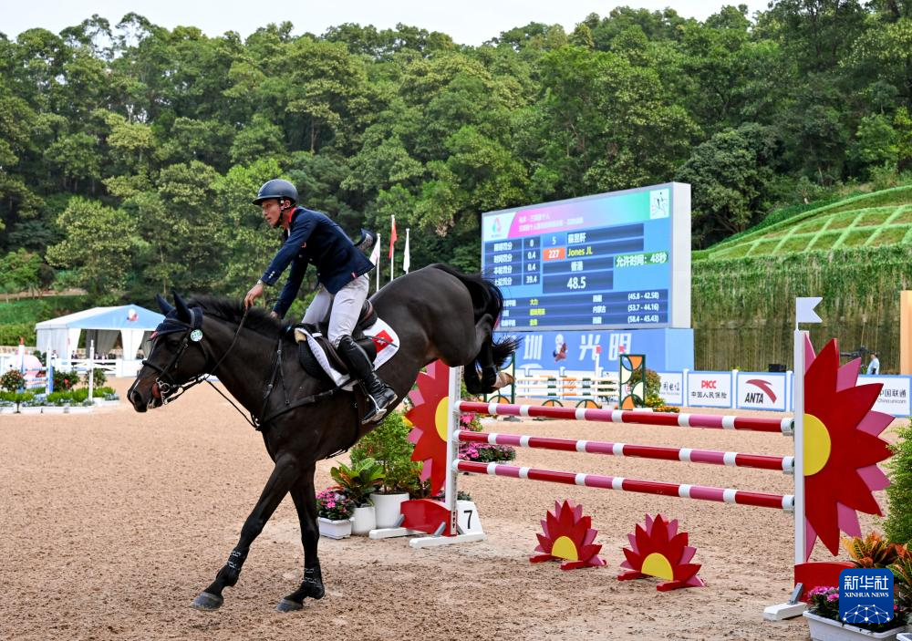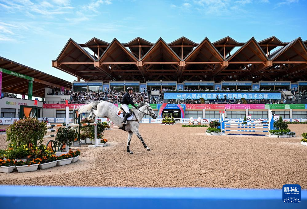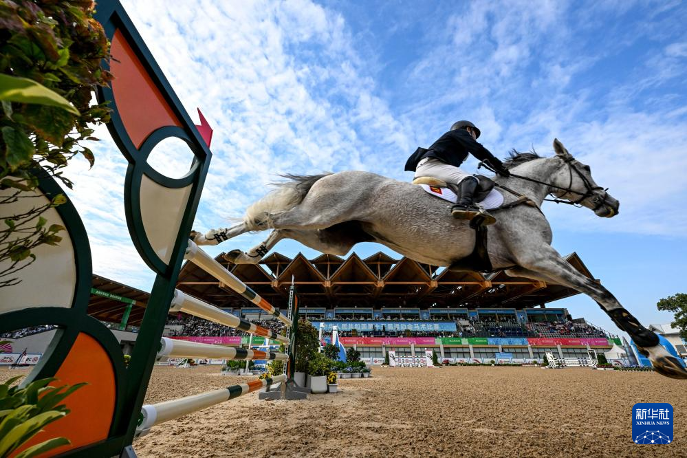 当日,第十五届全国运动会马术三项赛个人赛场地障碍决赛在广东深圳举行。