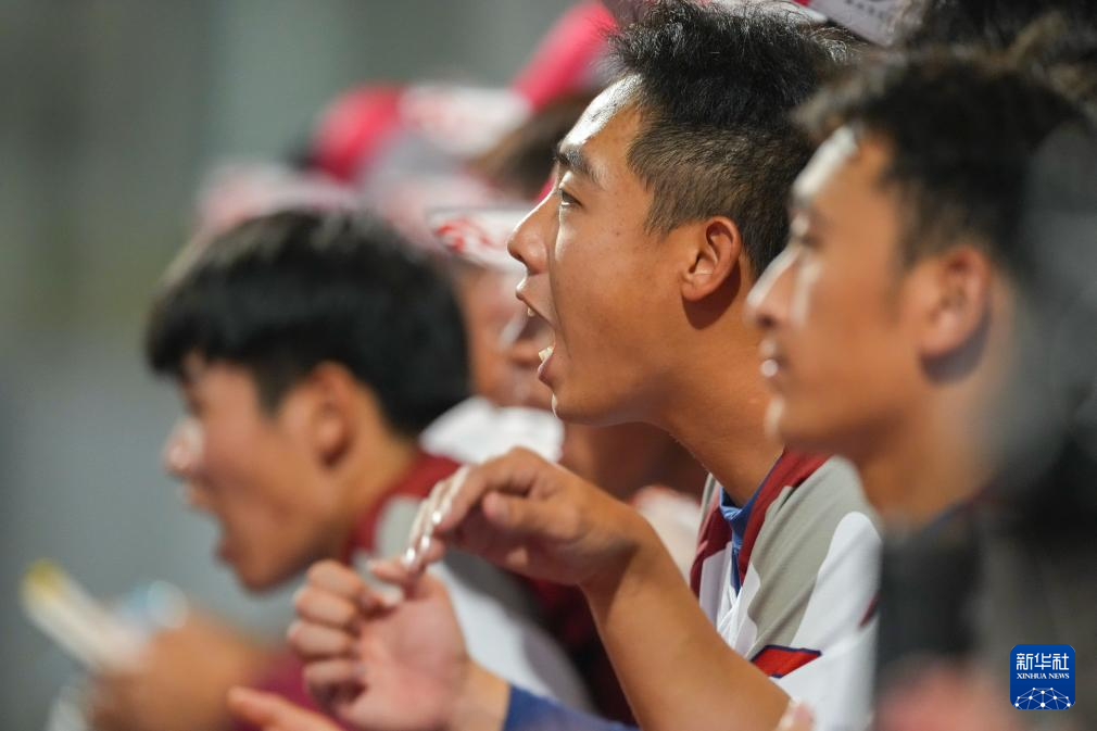 11月16日,江苏队球员在比赛中为队友加油助威。
