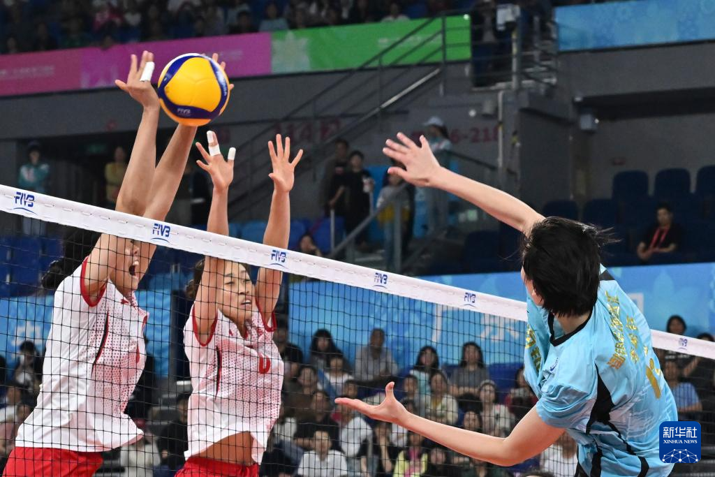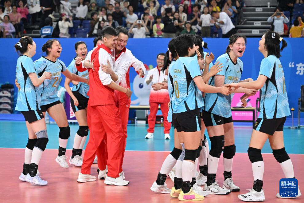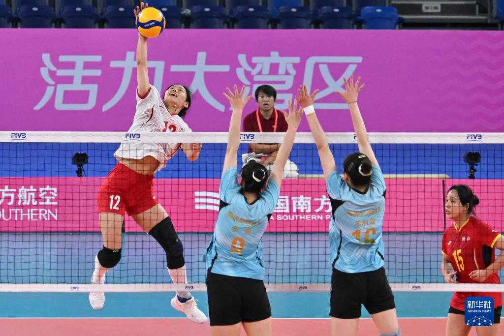 当日,在江门进行的第十五届全国运动会排球女子20岁以下组1/4交叉赛中,天津队3比2战胜浙江队。