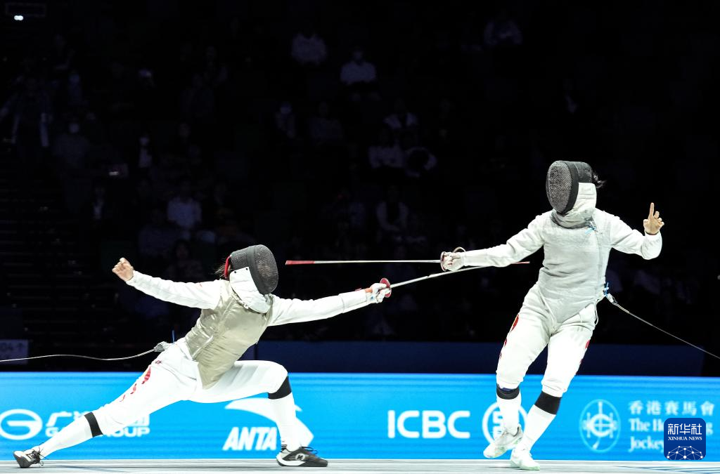 当日,在香港举行的第十五届全国运动会击剑项目女子花剑个人半决赛中,福建队选手黄芊芊15比8战胜福建队选手林绮雯。