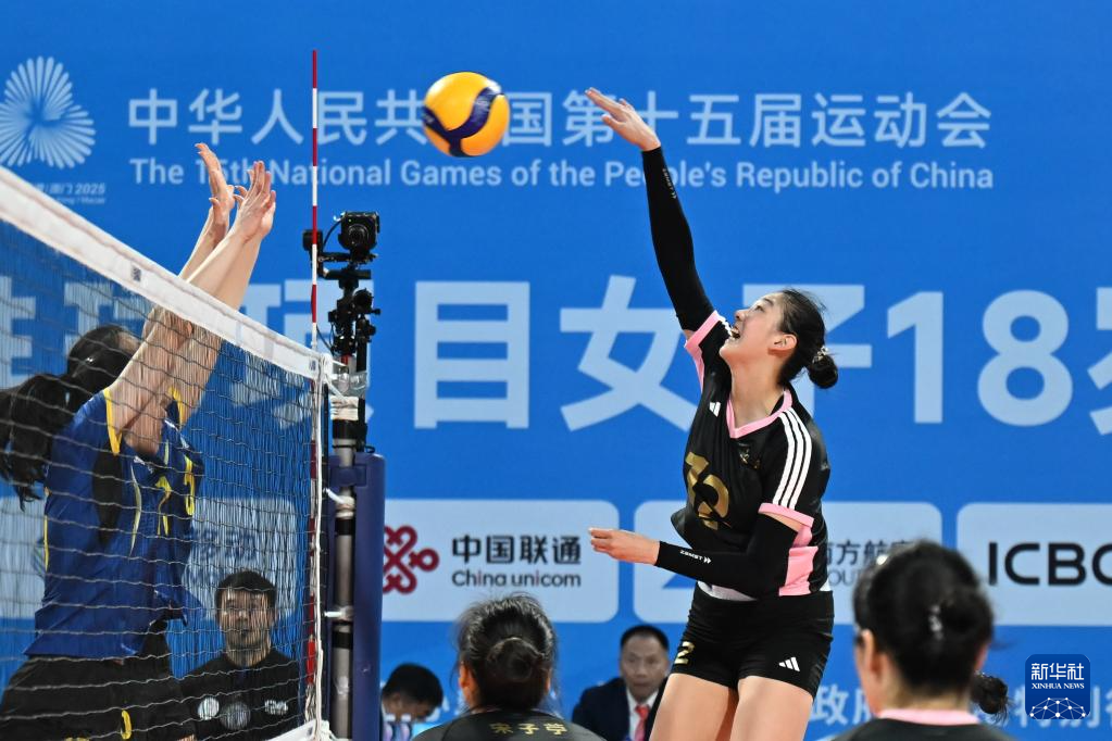 当日,在深圳进行的第十五届全国运动会排球女子18岁以下组1-4名半决赛中,上海队3比0战胜浙江队。