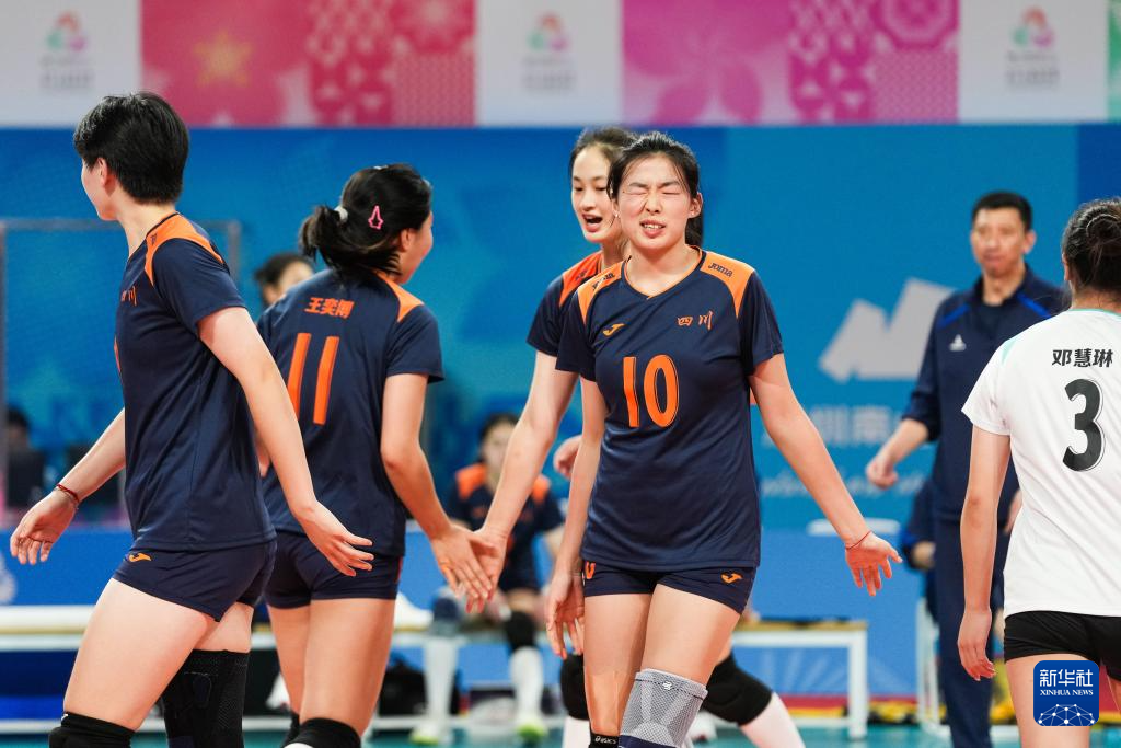 当日,在广东省深圳市举行的第十五届全国运动会排球女子18岁以下组5-8名半决赛比赛中,河南队3比1战胜四川队。