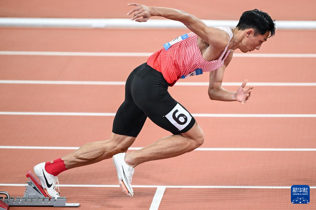 11月17日,福建队选手龚德滨(前)在比赛中。最终,他以48秒68的成绩夺得冠军并刷新全国纪录。