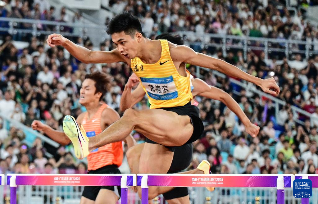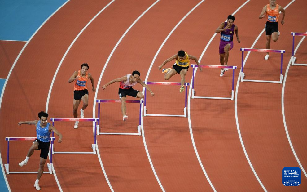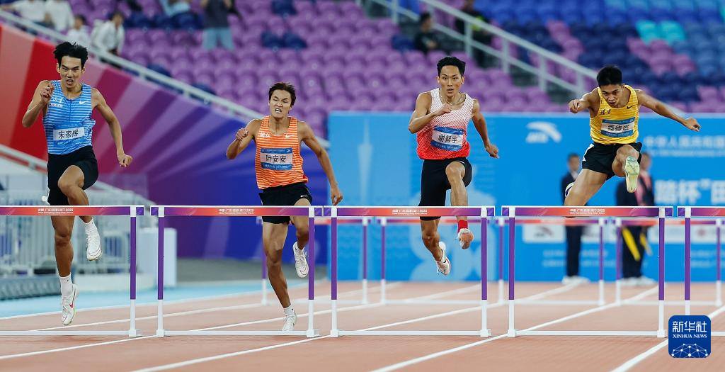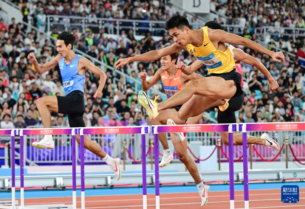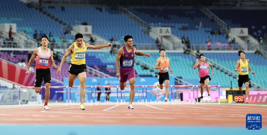 当日,第十五届全国运动会田径男子400米栏决赛在广州举行。