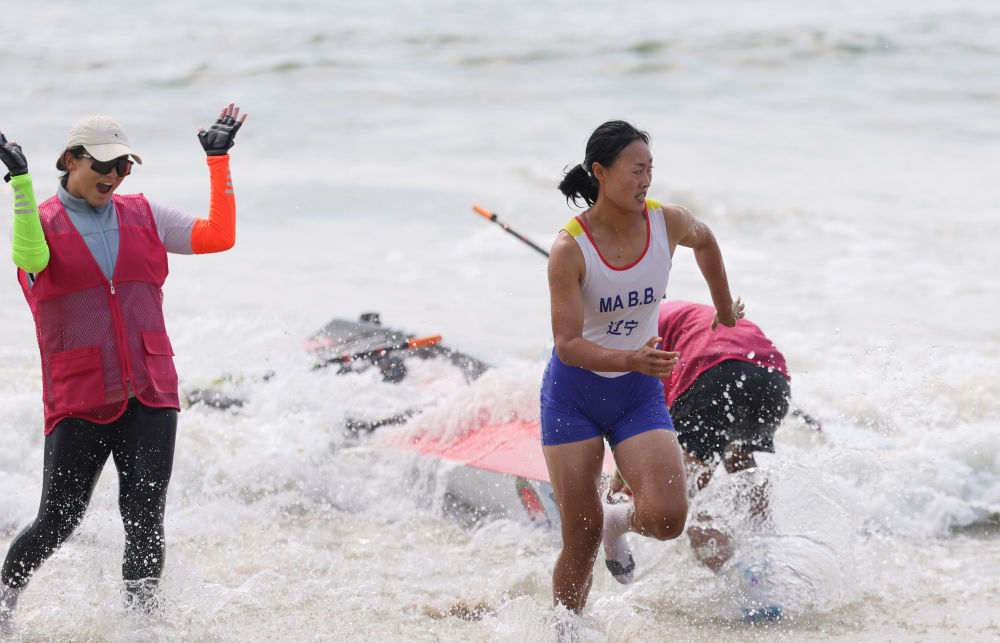 南海碧波之上,辽宁队的马冰冰与山东队的张玉婷乘风破浪,角逐最后的冠军。在前半程,张玉婷稍稍领先,并率先转弯回程。回程阶段,双方桨频都不断提高,几乎同时进入沙滩冲刺。最终马冰冰在冲刺阶段略快一步,以1.61秒的优势率先抵达终点。浙江队的李丹获得铜牌。