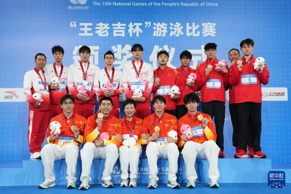 当日,第十五届全国运动会游泳男子4X100米混合泳接力决赛在广东省深圳市举行。