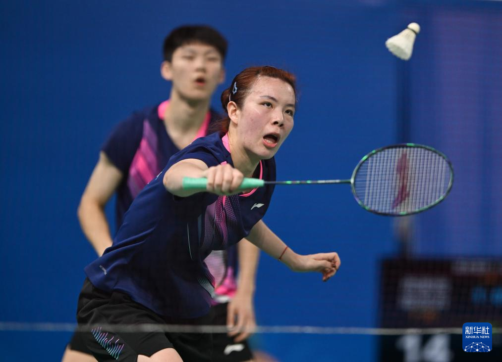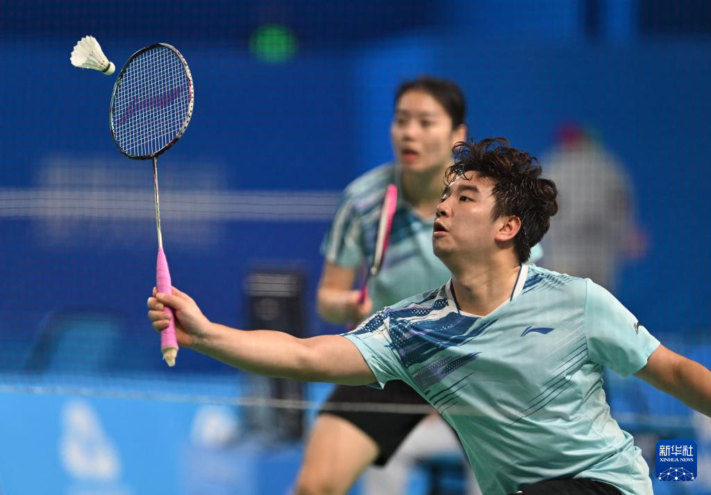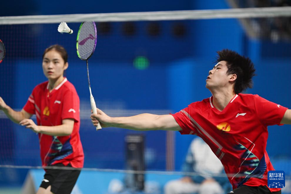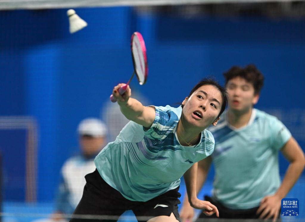 当日,第十五届全国运动会羽毛球混双四分之一决赛在深圳举行。