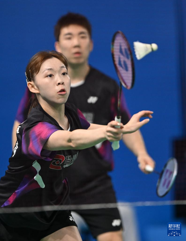 11月17日,广东队组合高家炫(右)/陈芳卉在比赛中。他们2比0战胜湖南队组合夏昊亮/唐睿芝,晋级半决赛。