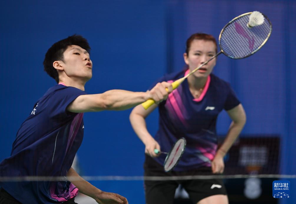 11月17日,浙江队组合郭新娃/吴梦莹(前)在比赛中。他们2比0战胜广东队组合吴拓斌/冯雪颖,晋级半决赛。