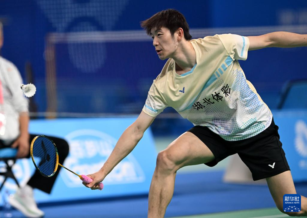 当日,第十五届全国运动会羽毛球男单四分之一决赛在深圳举行。