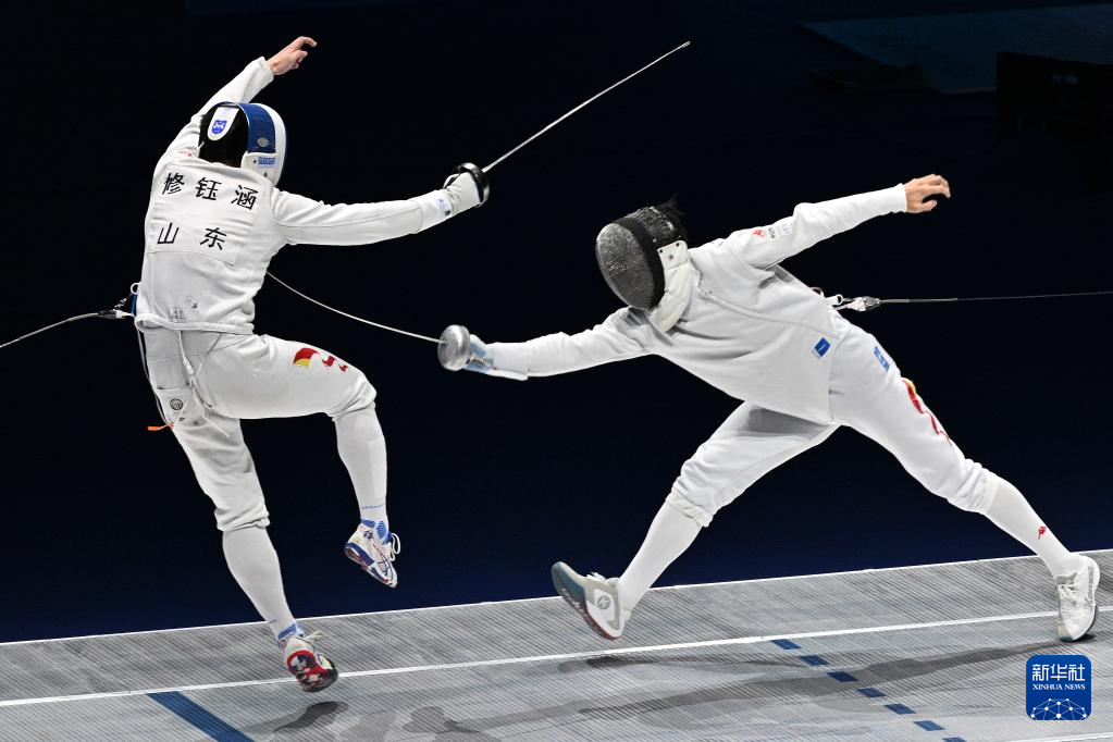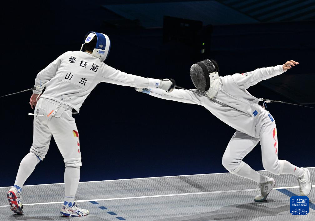11月17日,山东队选手修钰涵(左)与安徽队选手俞乐凡在比赛中。