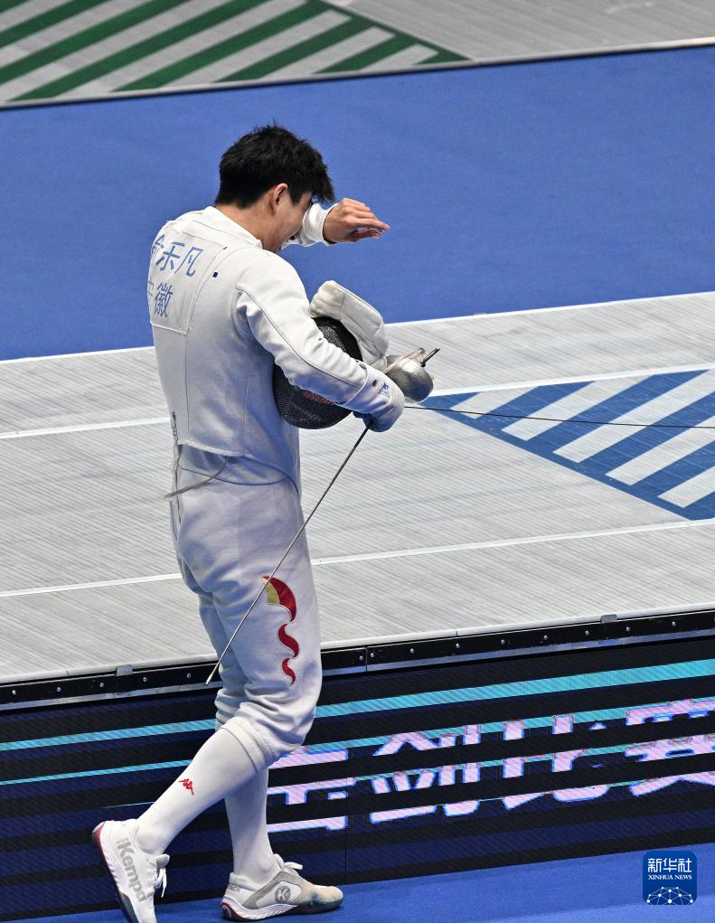 当日,在香港举行的第十五届全国运动会击剑项目男子重剑个人金牌赛中,安徽队选手俞乐凡15比10战胜山东队选手修钰涵,获得金牌。
