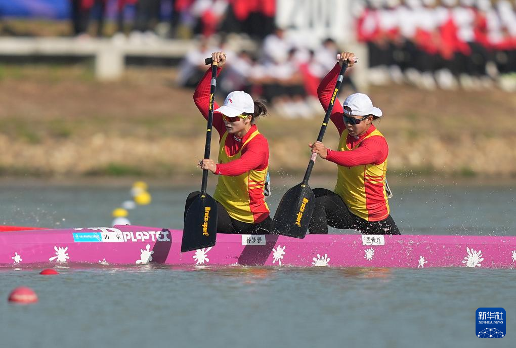 当日,第十五届全国运动会皮划艇静水项目女子500米双人划艇决赛在广州举行。
