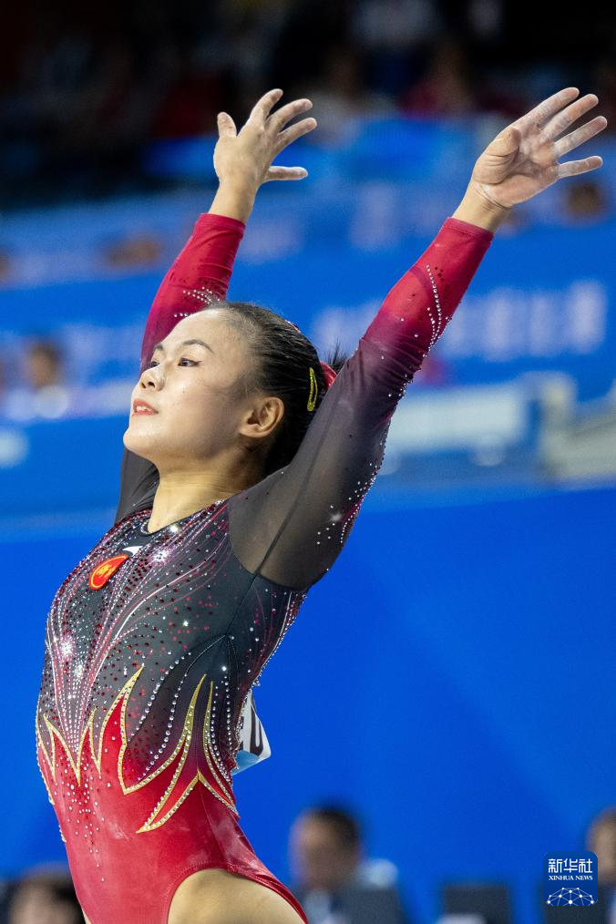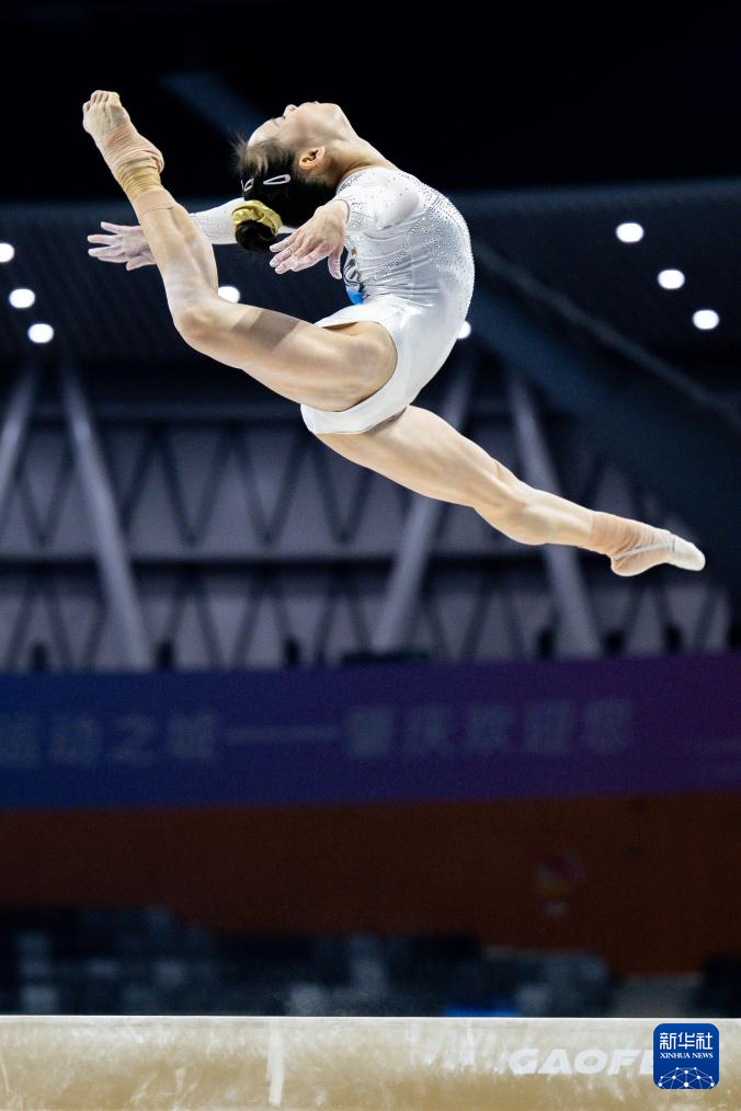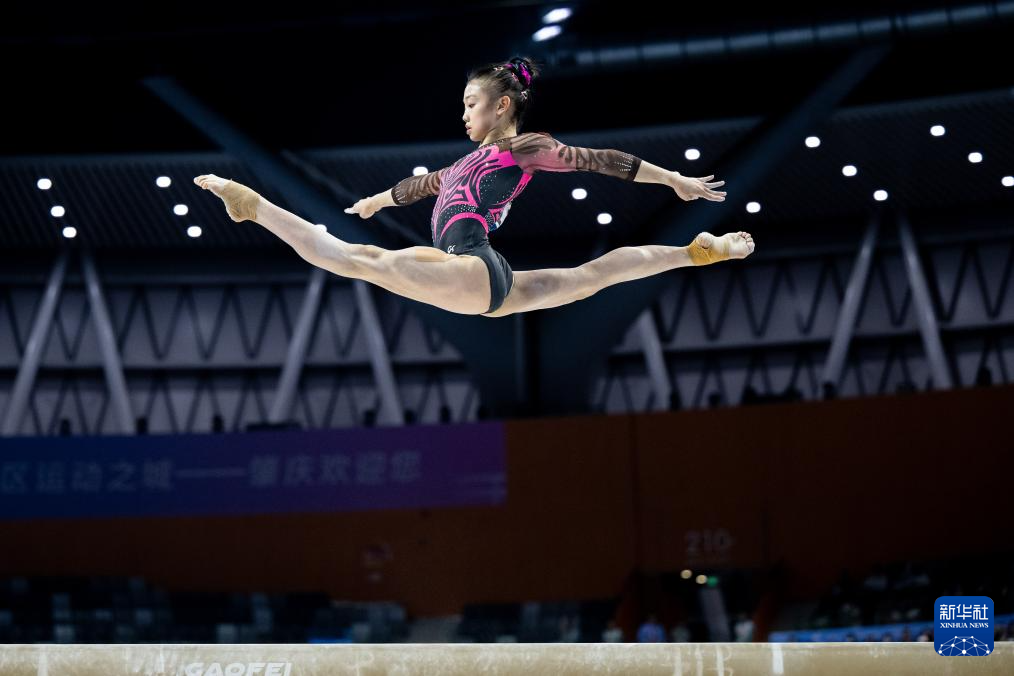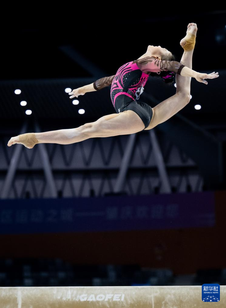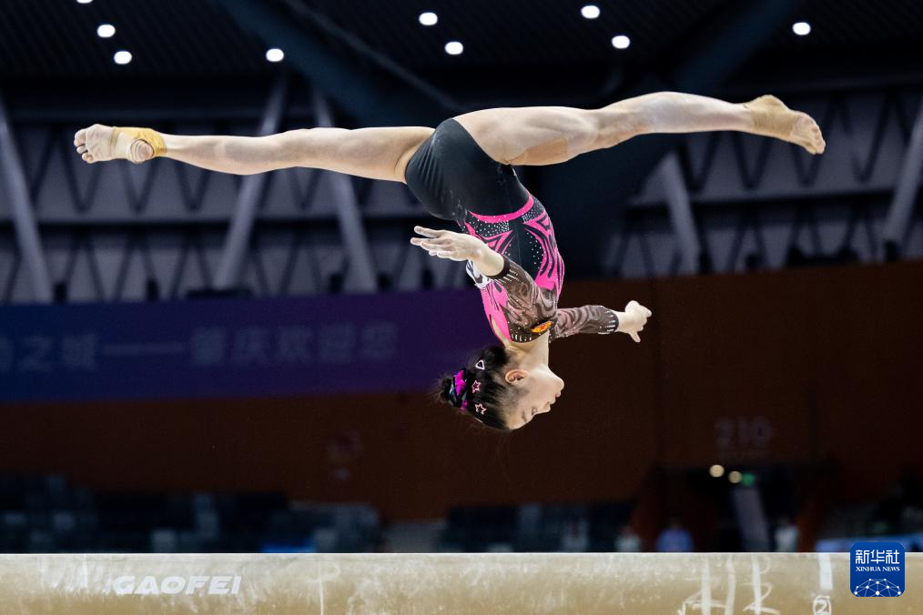 当日,第十五届全国运动会体操项目女子平衡木决赛在肇庆举行。