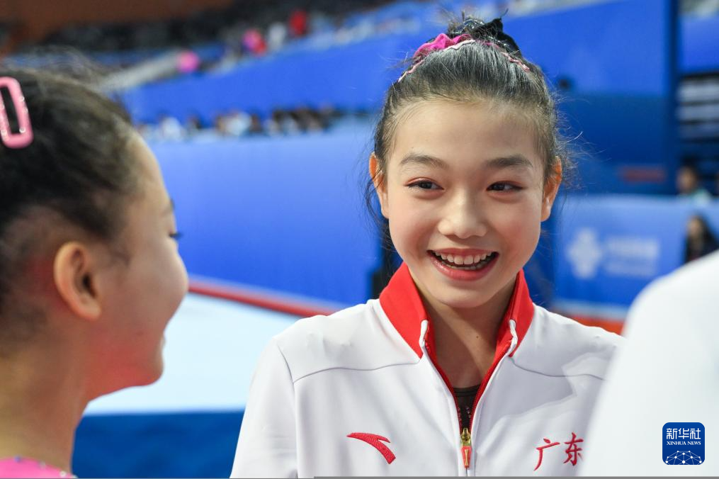 11月17日,广东队选手柯沁沁(右)在比赛后。她夺得冠军。