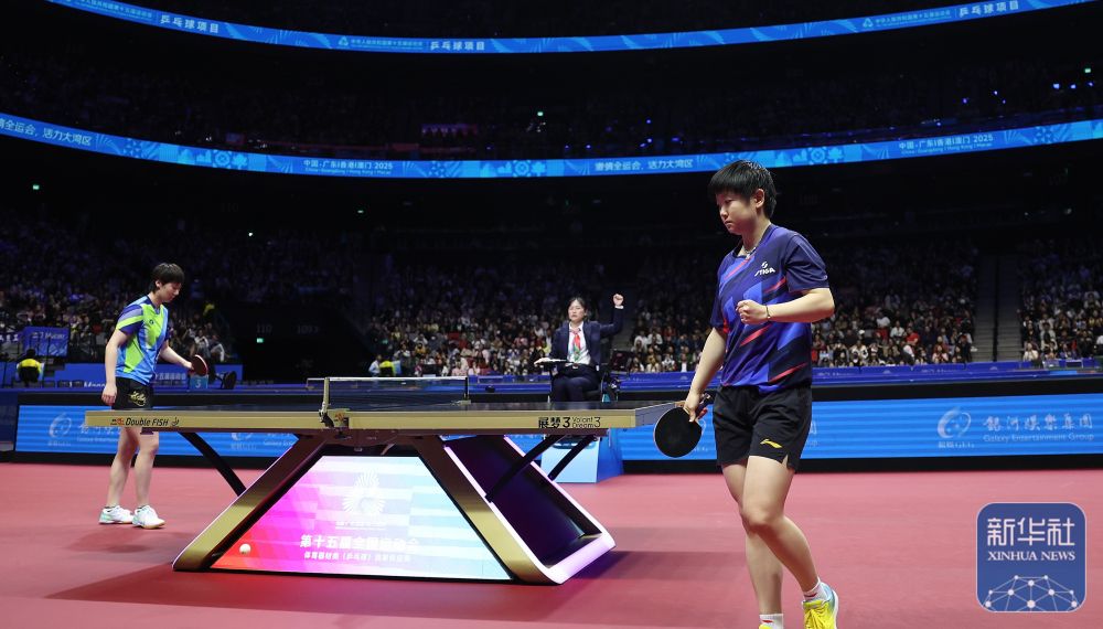 11月16日,第十五届全国运动会乒乓球女子单打金牌赛在澳门举行,黑龙江队选手王曼昱4比2战胜河北队选手孙颖莎,获得冠军。