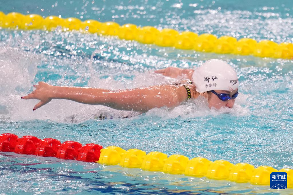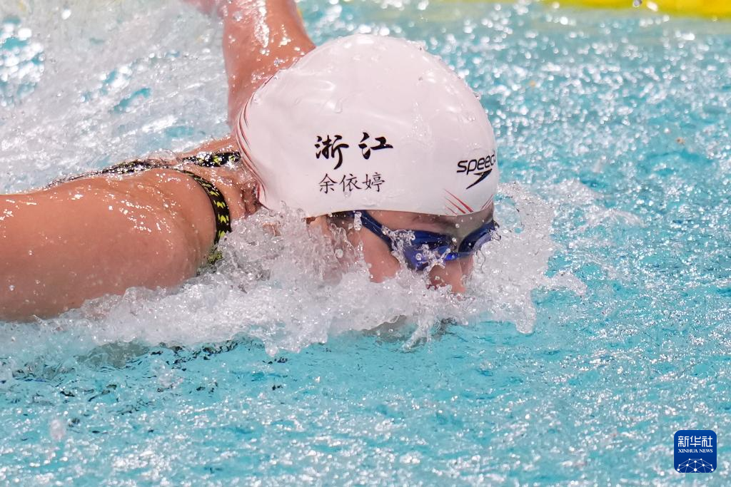 11月17日,浙江队第三棒选手余依婷在比赛中。最终,浙江队获得冠军。