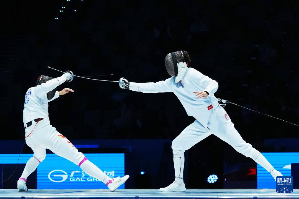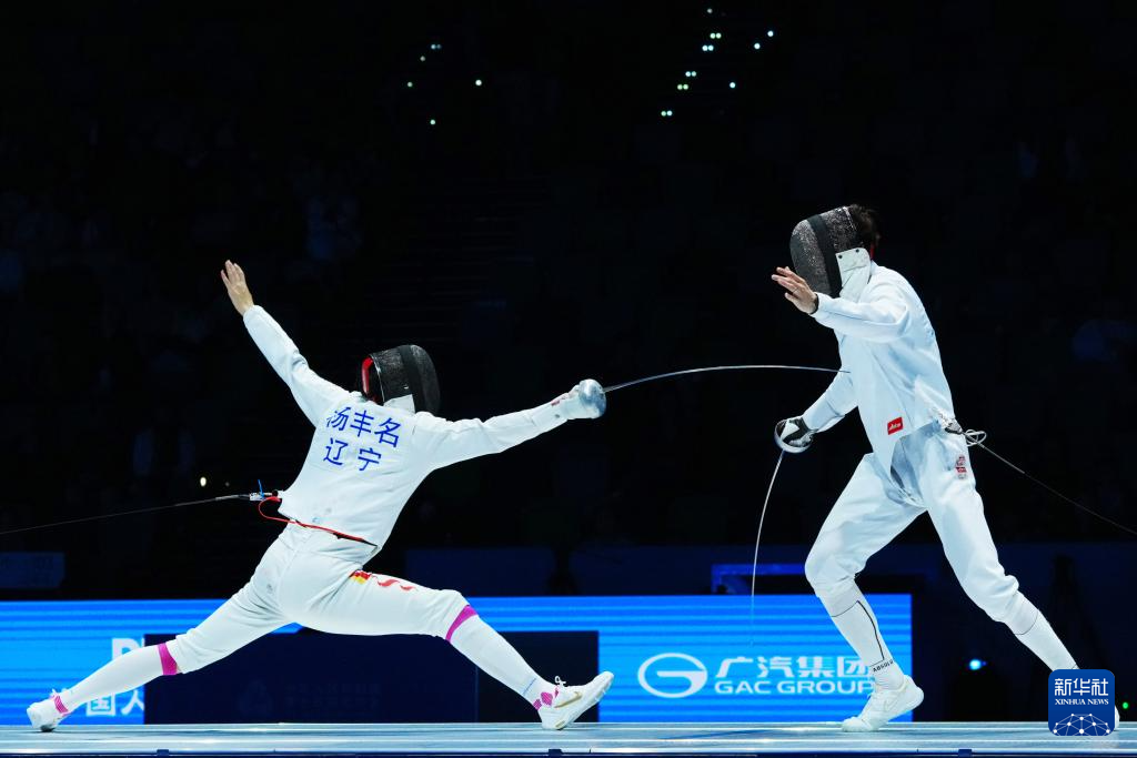 11月17日,广东队选手黄中铭(右)和辽宁队选手杨丰名在比赛中。