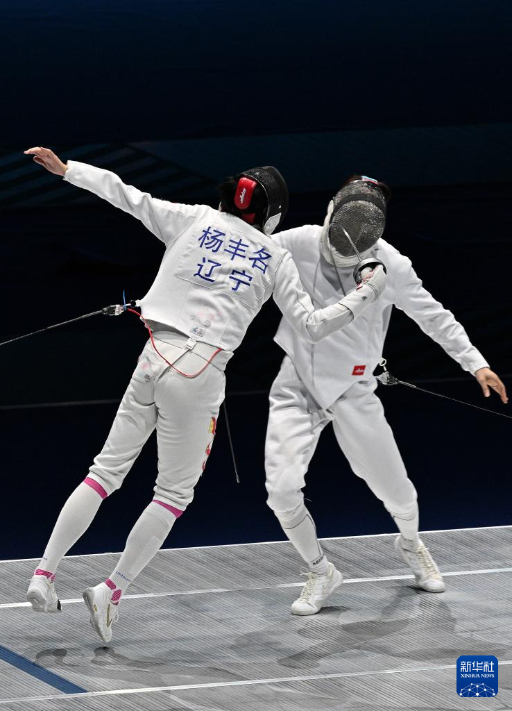 11月17日,辽宁队选手杨丰名(左)与广东队选手黄中铭在比赛中。