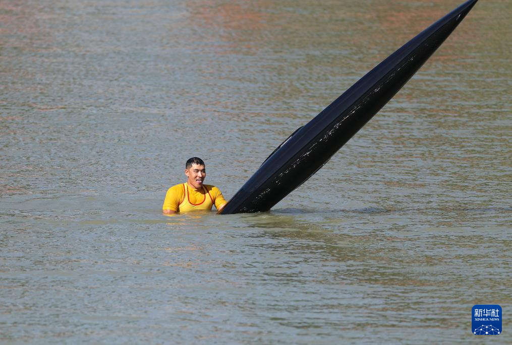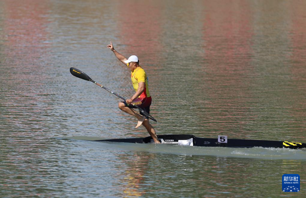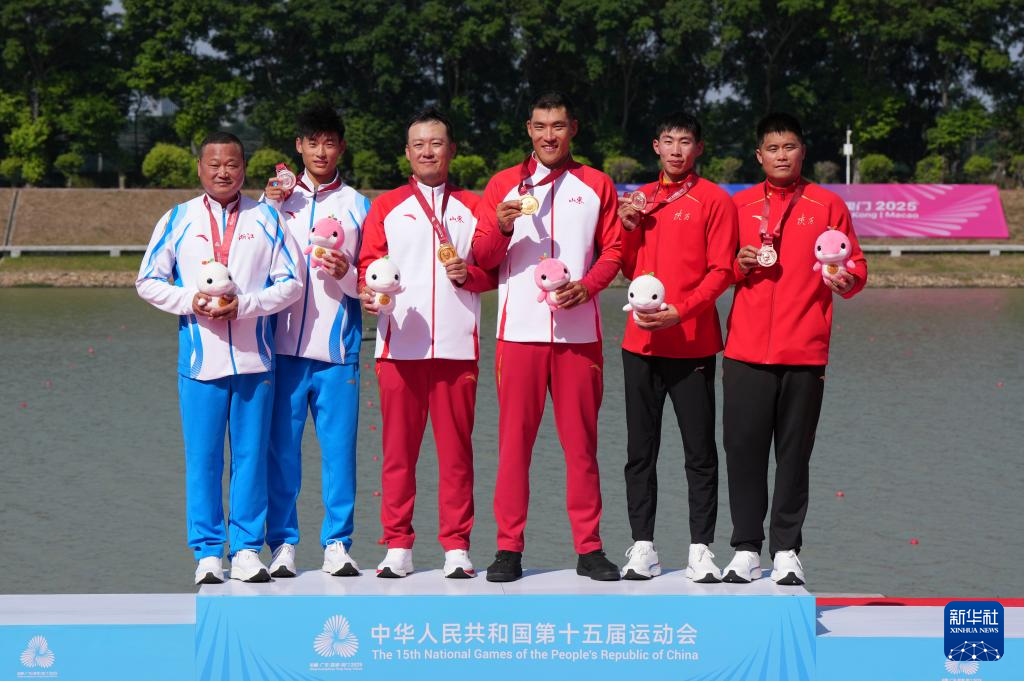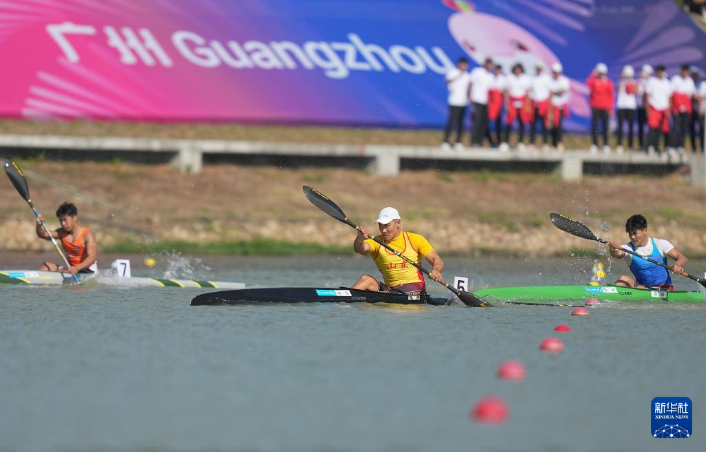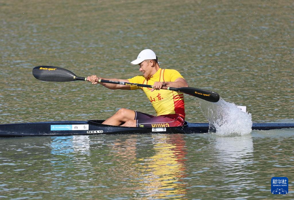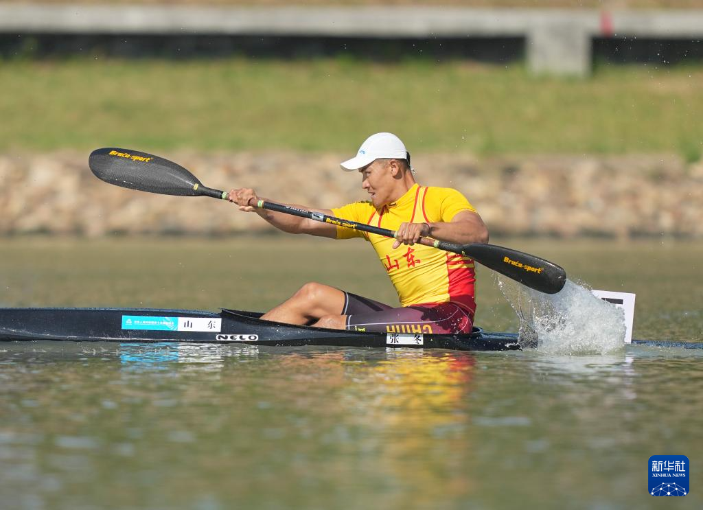 当日,第十五届全国运动会皮划艇静水项目男子1000米单人皮艇决赛在广州举行。