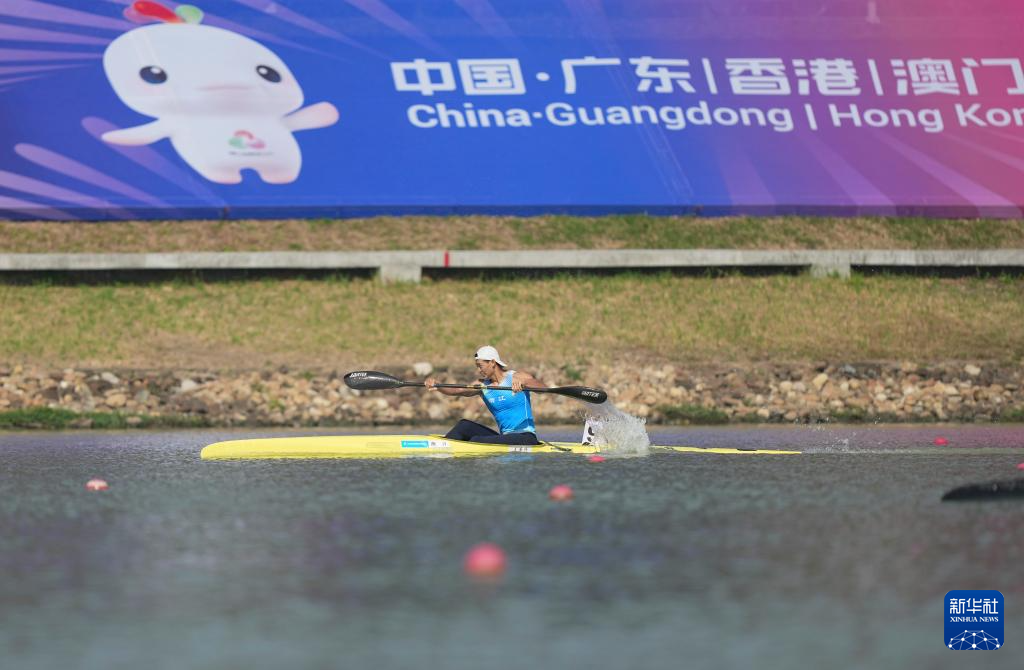 当日,第十五届全国运动会皮划艇静水项目男子1000米单人皮艇决赛在广州举行。
