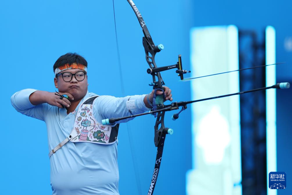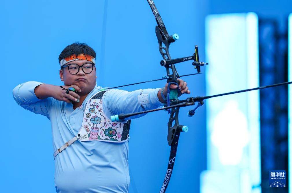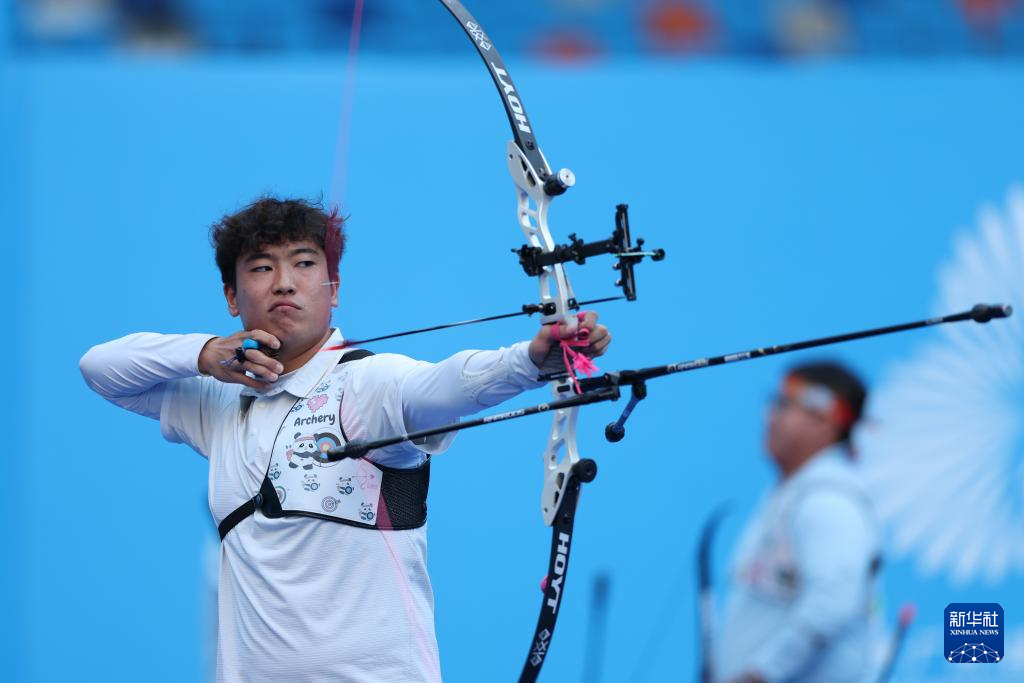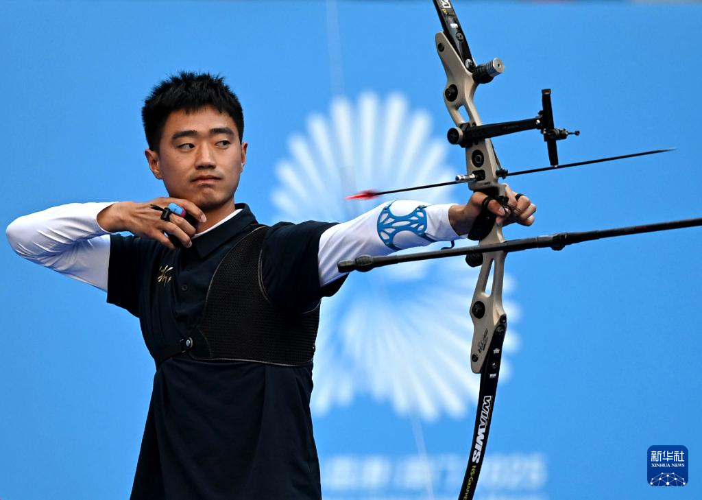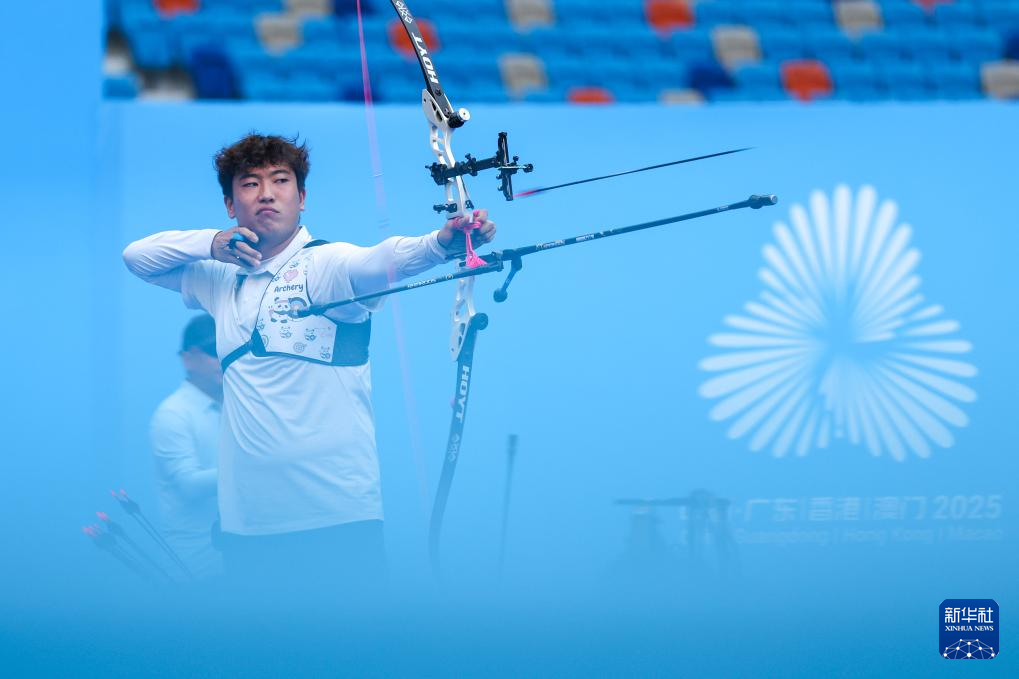 当日,第十五届全国运动会射箭男子反曲弓个人决赛在深圳举行。