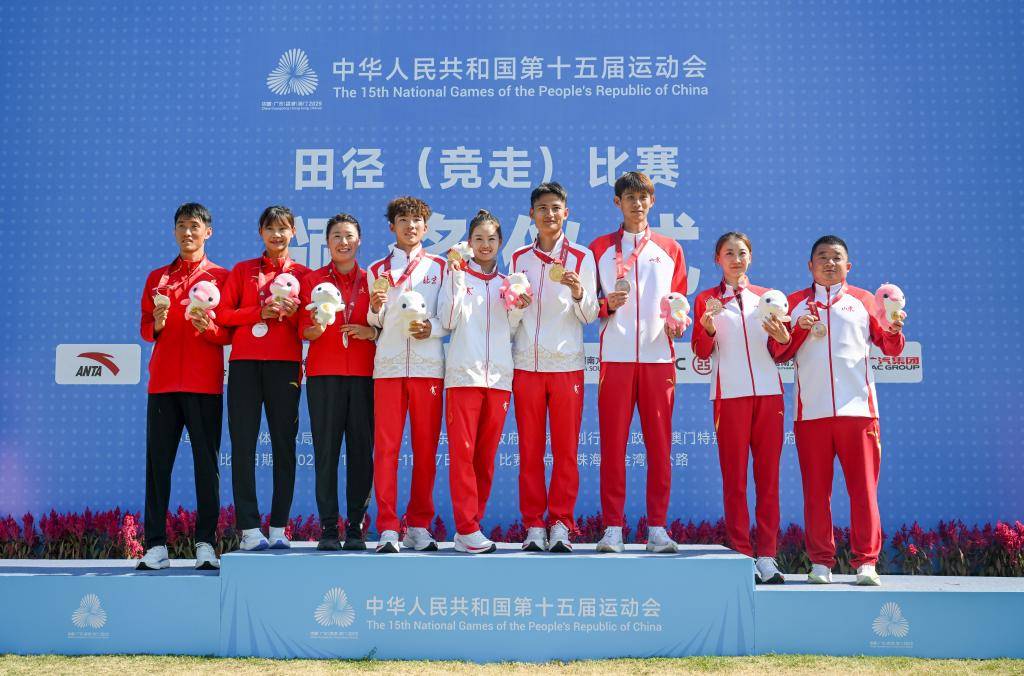 新华社珠海11月17日电(记者田宇、李琳海)第十五届全国运动会田径(竞走)赛事17日在珠海落幕。在马拉松竞走混合接力比赛中,由奥运冠军、本届全运会女子20公里竞走冠军杨家玉和18岁小将、本届全运会男子20公里竞走亚军石升吉组成的北京1队,以2小时58分01秒夺冠。这也是北京队在本届全运会竞走项目中获得的第二枚金牌。