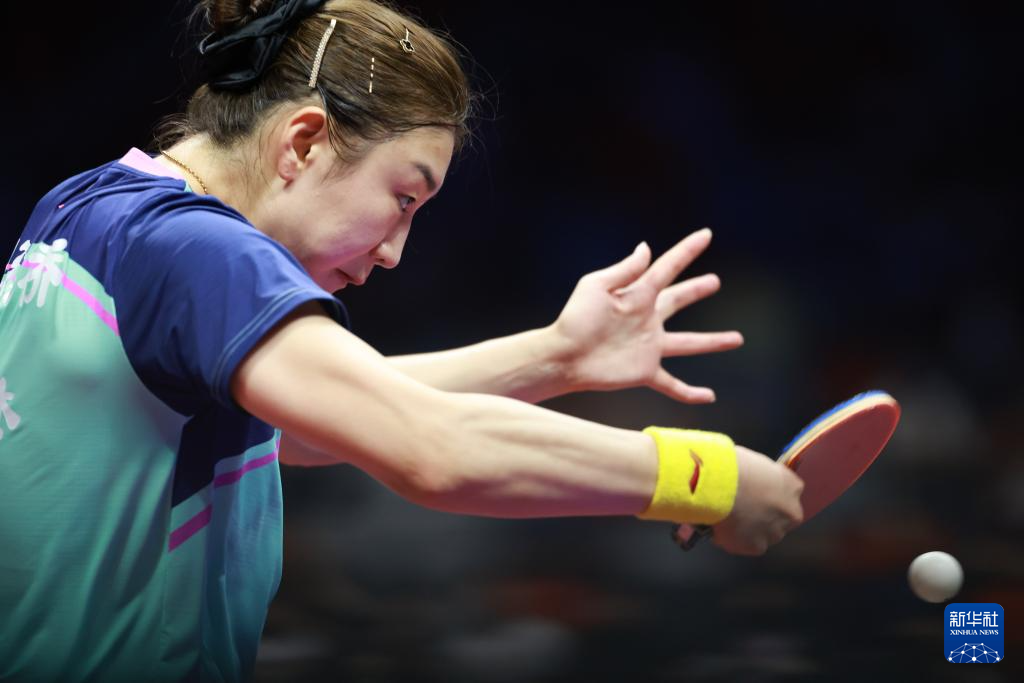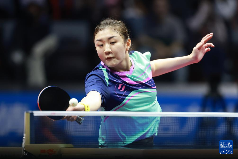 11月17日,山东队选手陈梦在比赛中回球,她3比0战胜四川队选手冷雨桐。