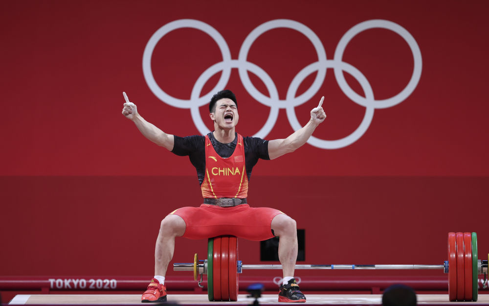2021年7月28日,石智勇夺得东京奥运会举重男子73公斤级冠军。新华社记者 杨磊 摄