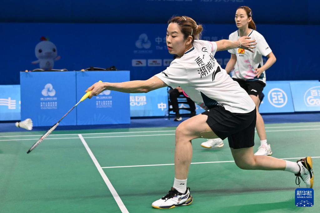 11月18日,湖南队组合贾一凡(左)/张驰在比赛中回球。