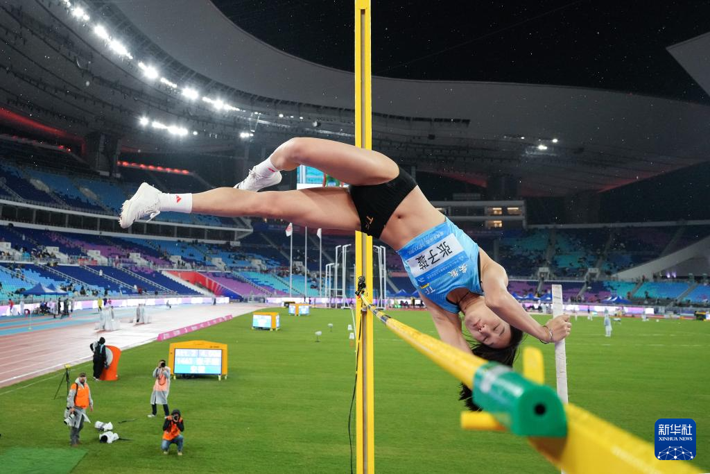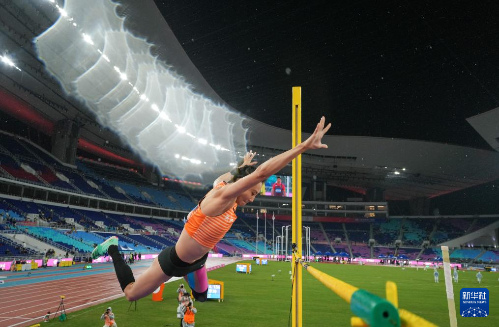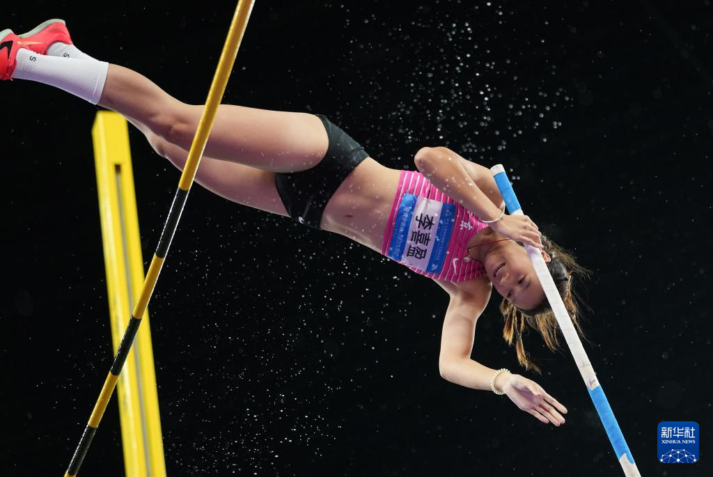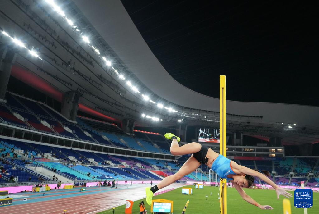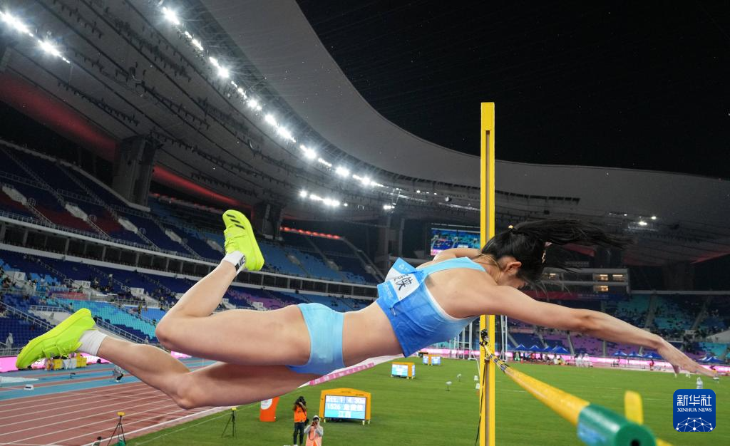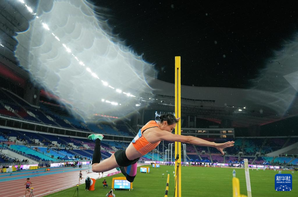 当日,第十五届全国运动会田径项目女子撑杆跳高决赛在广州举行。