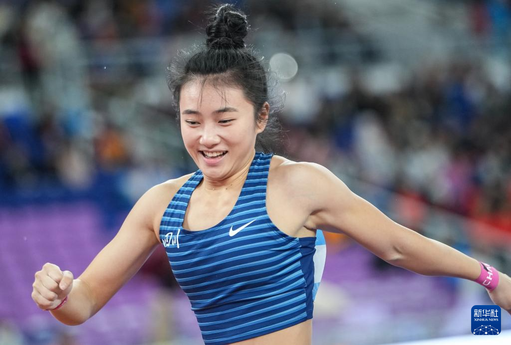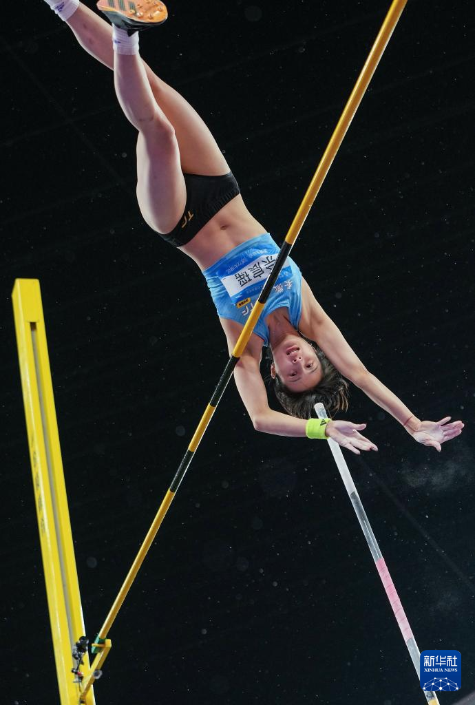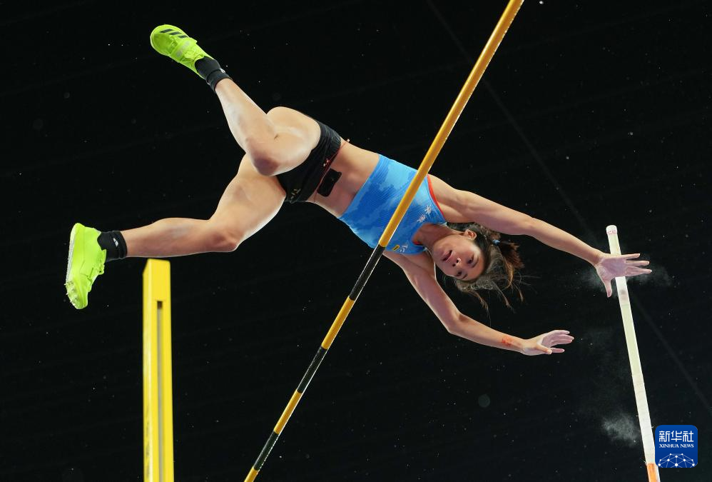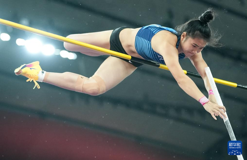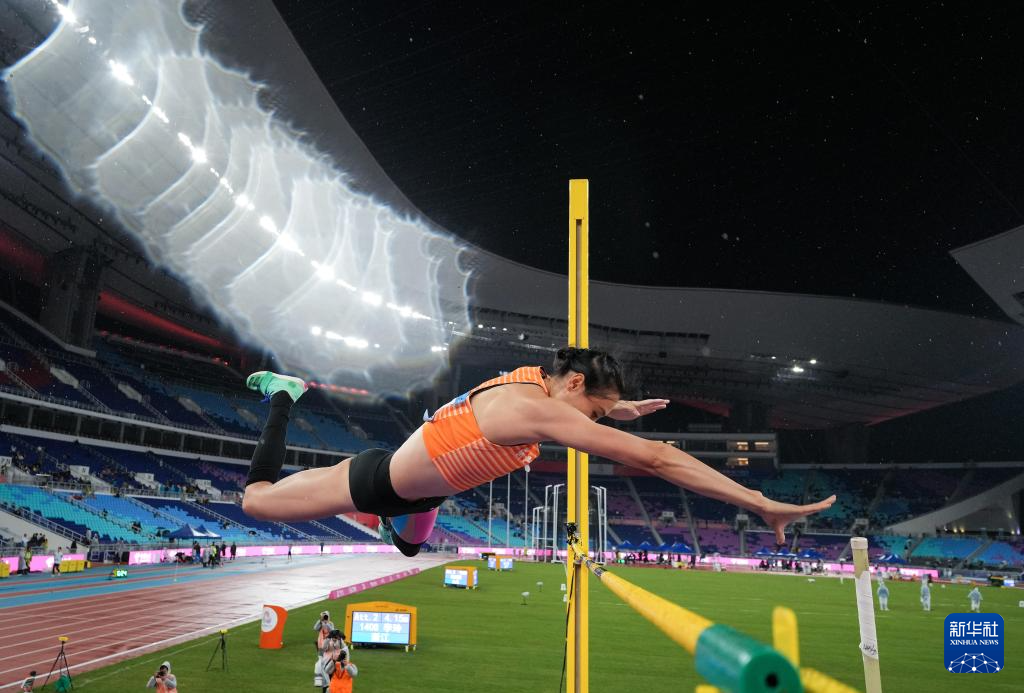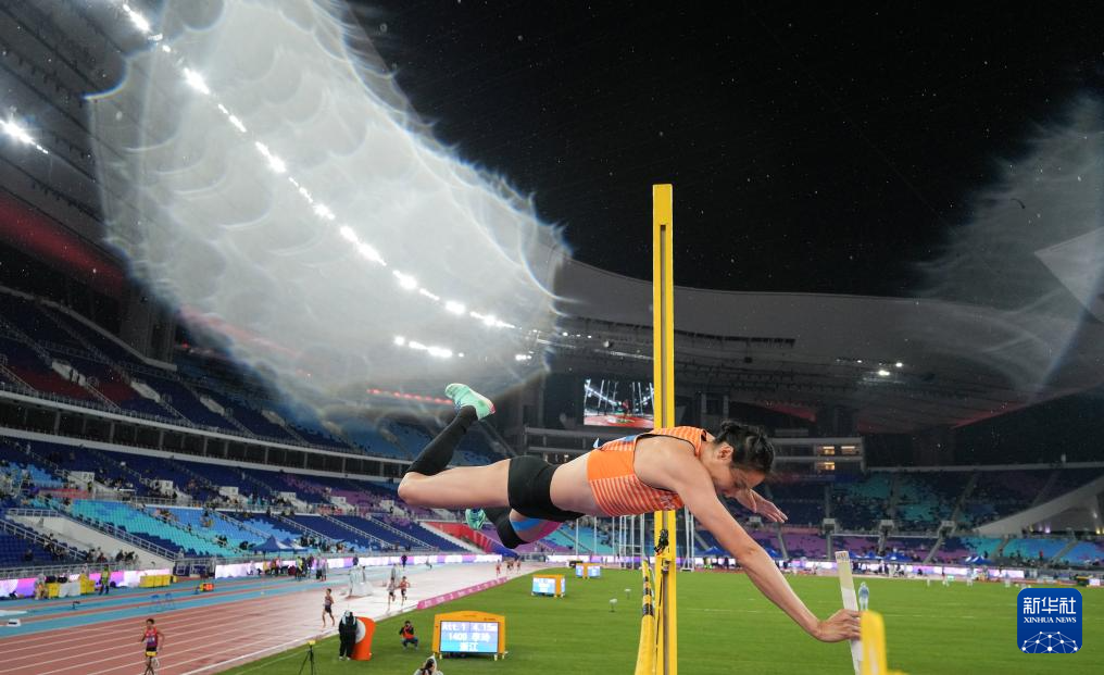 当日,第十五届全国运动会田径项目女子撑杆跳高决赛在广州举行。