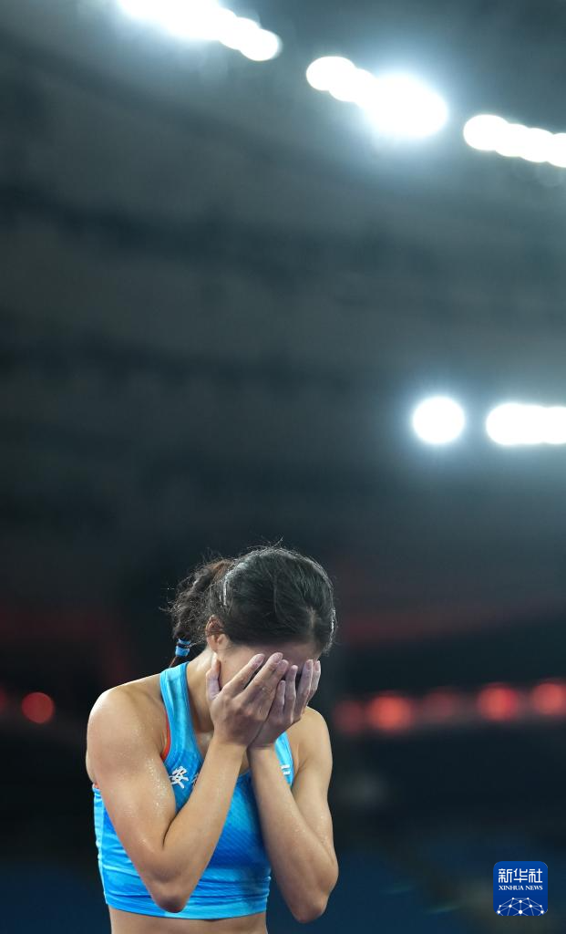 11月18日,安徽队选手牛春格在试跳失败后掩面。