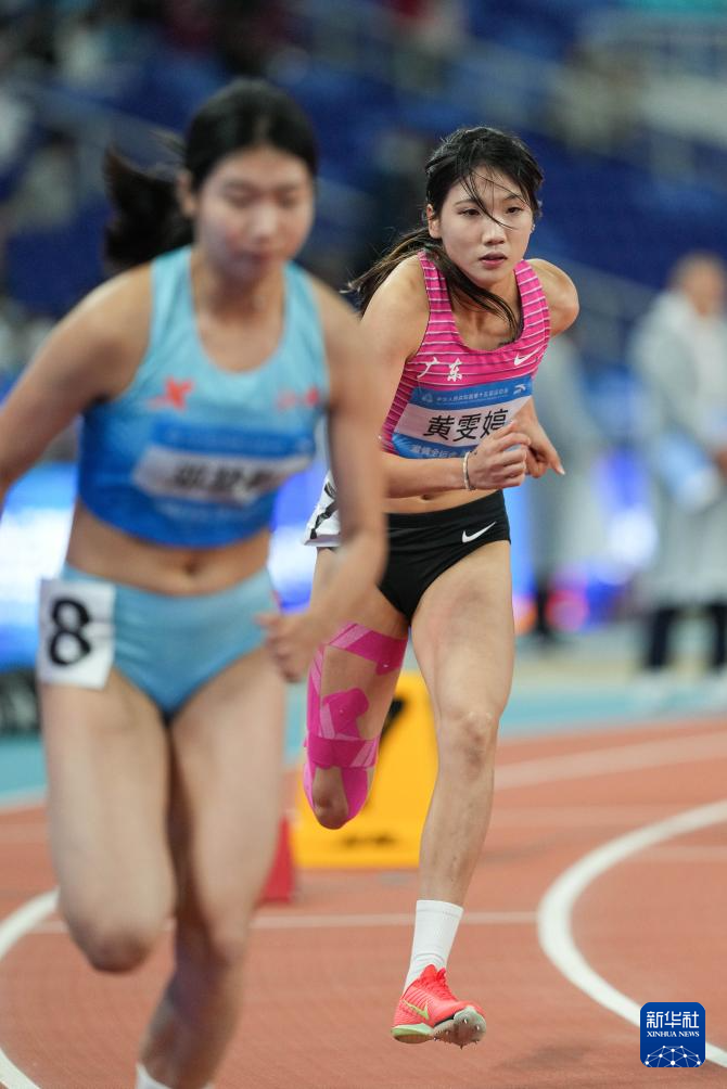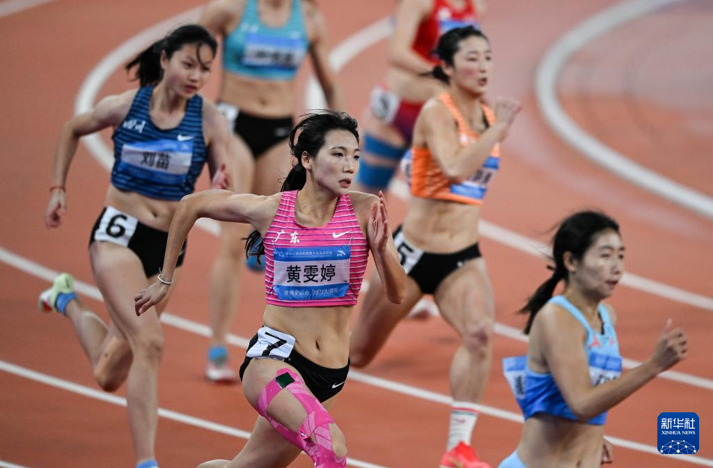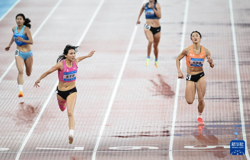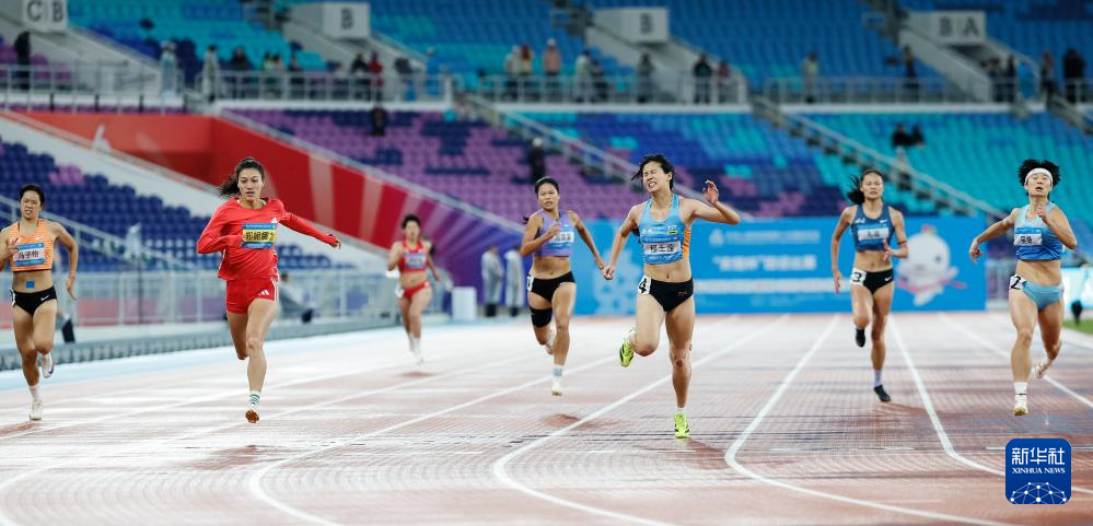 11月18日,广东队选手黄雯婷(左二)在比赛中冲线。