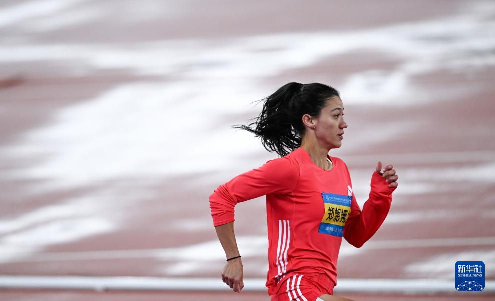 11月18日,山西队选手郑妮娜力在比赛中冲线。