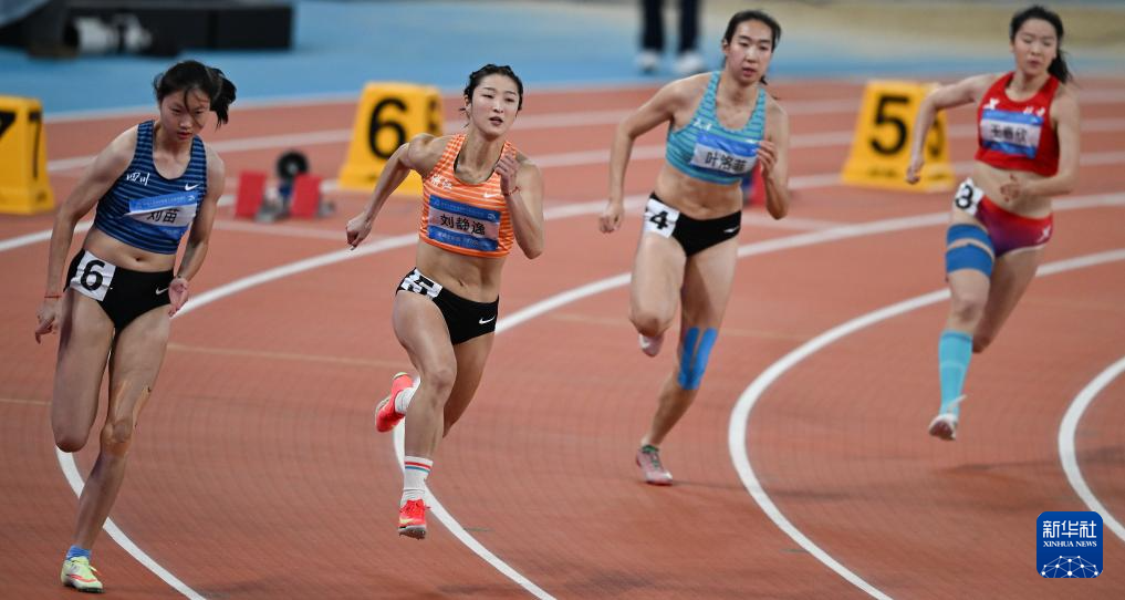 11月18日,四川队选手胡星语、福建队选手陈艳琪、辽宁队选手高淼、江西队选手肖君瑶、湖北队选手黄小雪、浙江队选手徐佳欢(从左至右)在比赛中冲线。