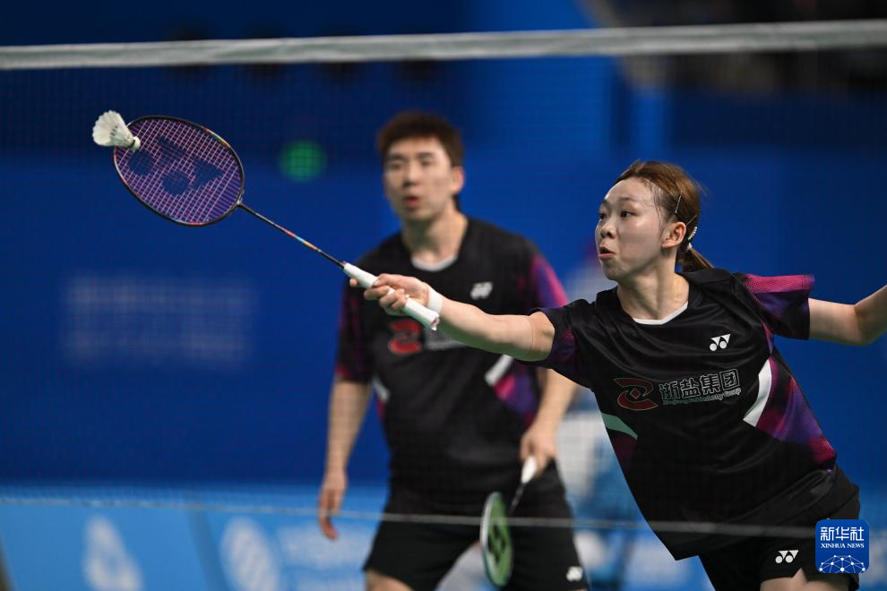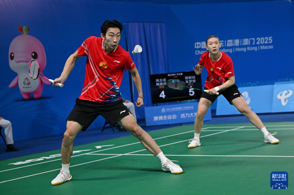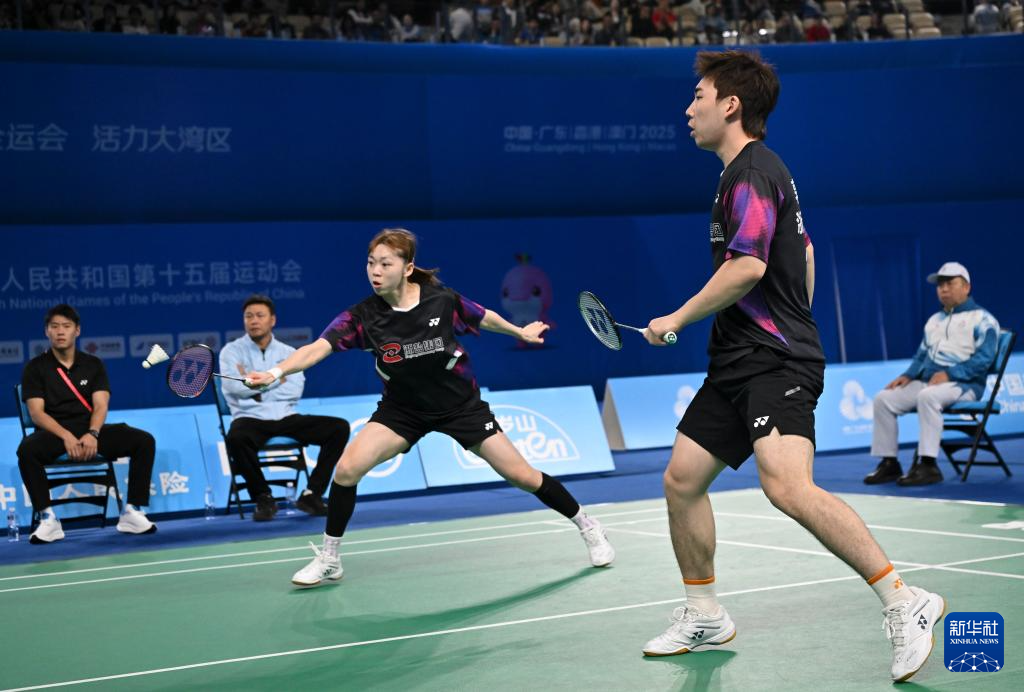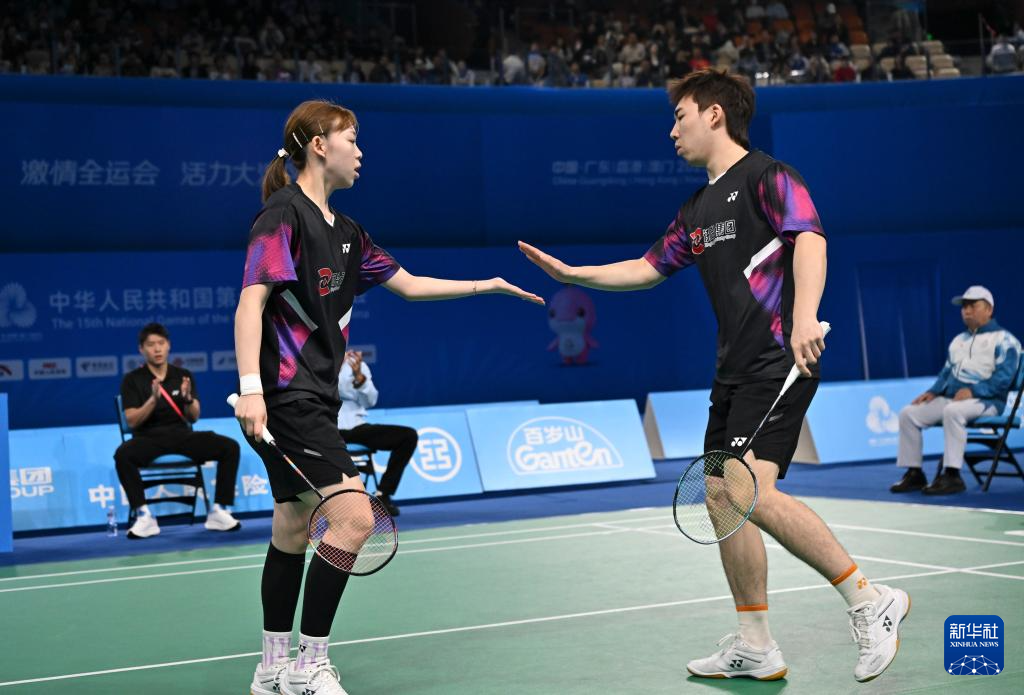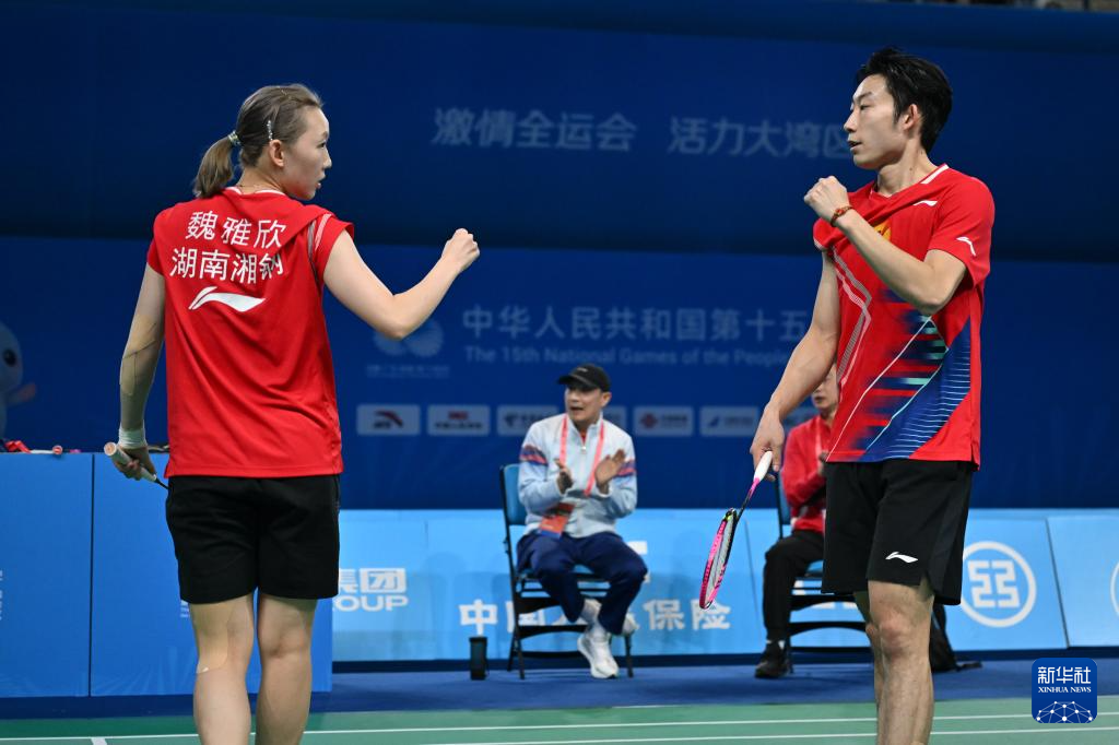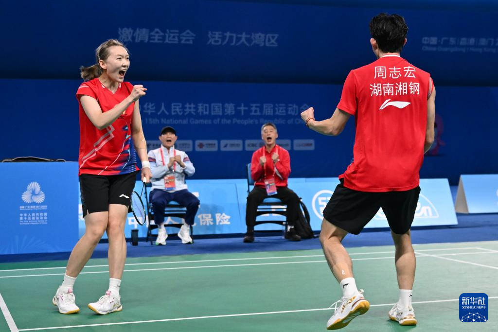 当日,在广东深圳举行的第十五届全国运动会羽毛球混合双打半决赛中,湖南队组合周志宏/魏雅欣2比0战胜浙江队组合郭新娃/吴梦莹。
