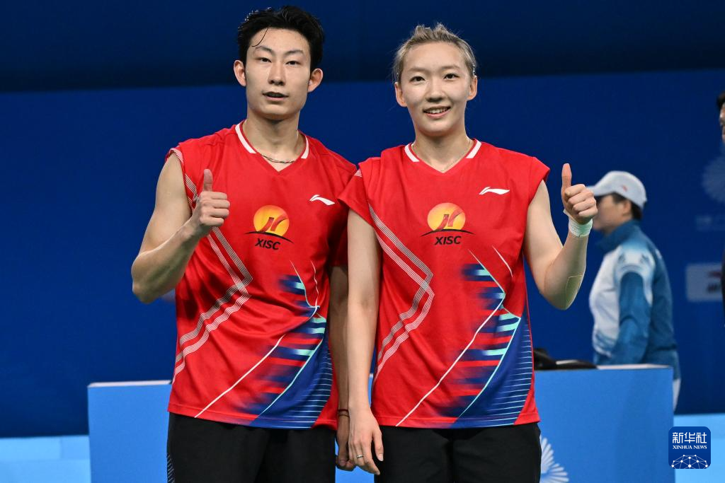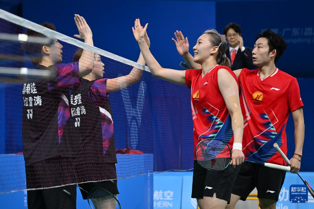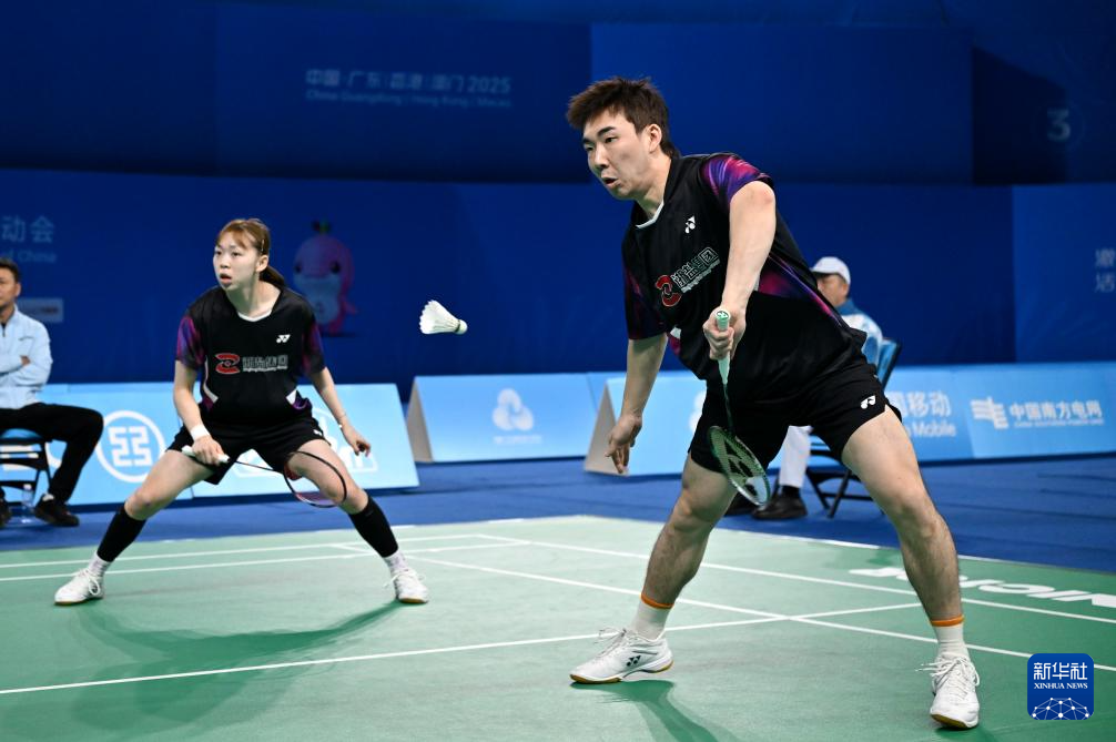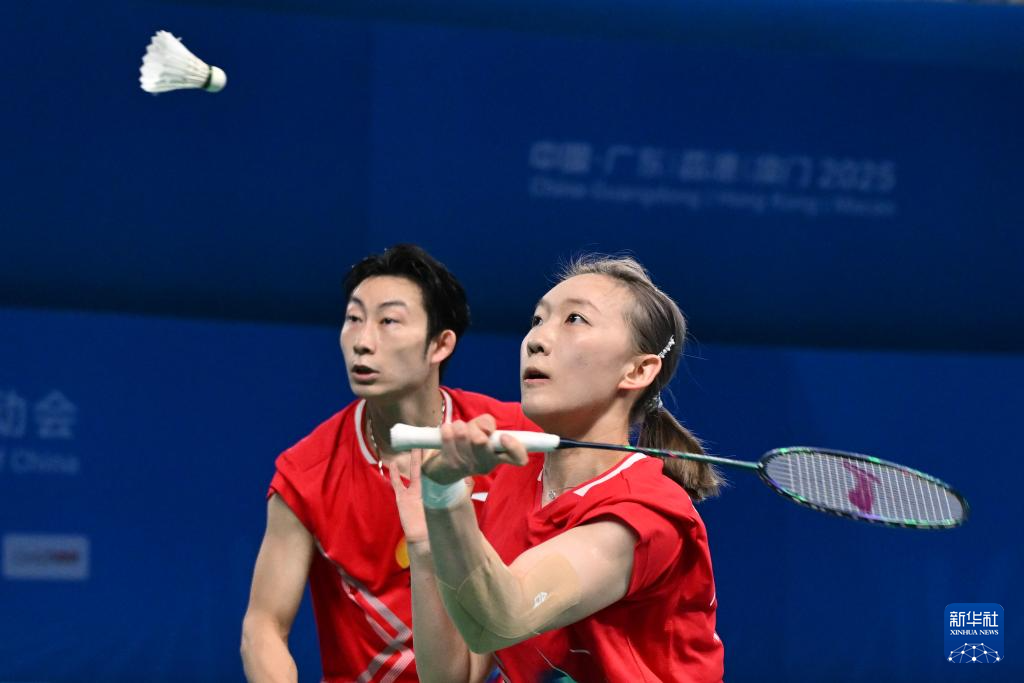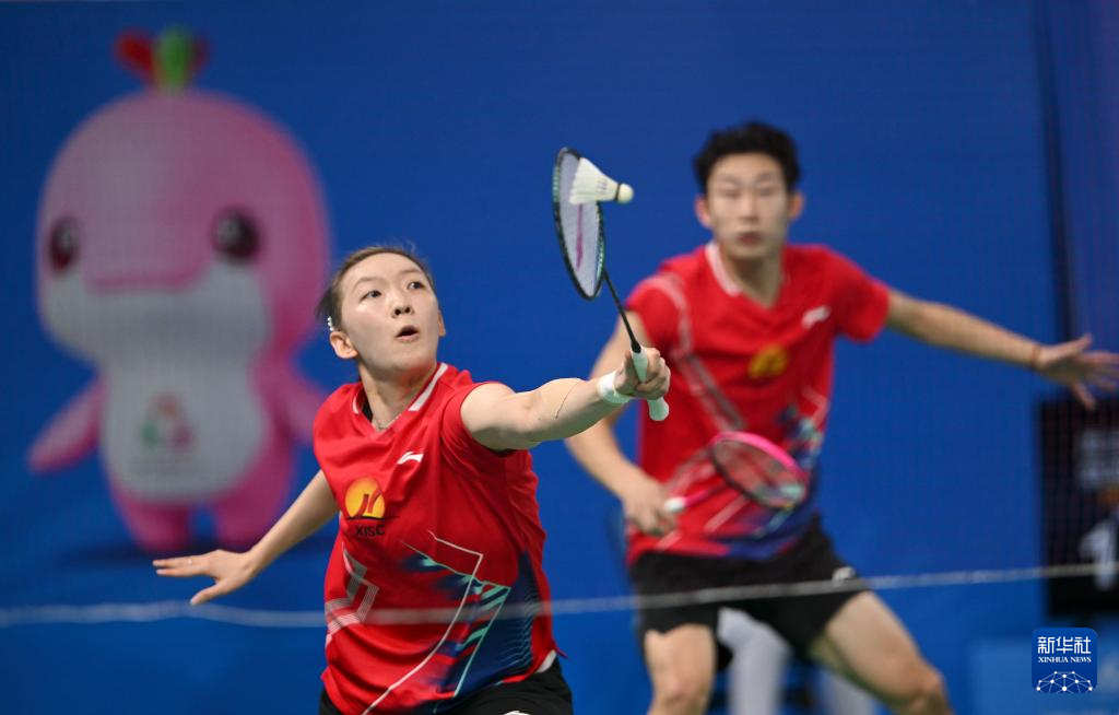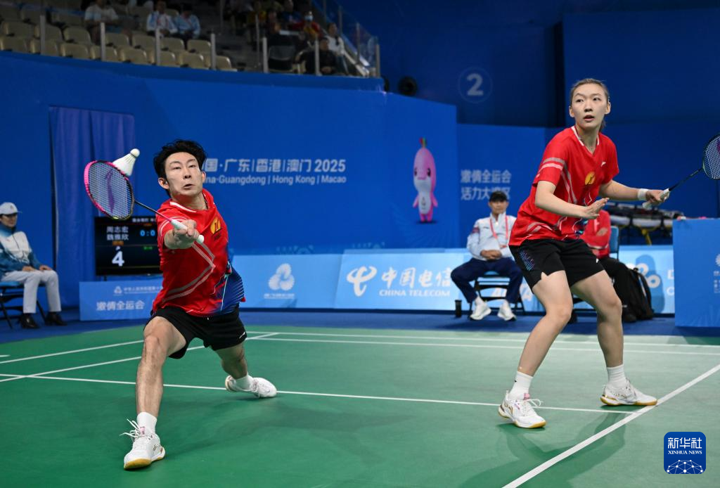当日,在广东深圳举行的第十五届全国运动会羽毛球混合双打半决赛中,湖南队组合周志宏/魏雅欣2比0战胜浙江队组合郭新娃/吴梦莹。
