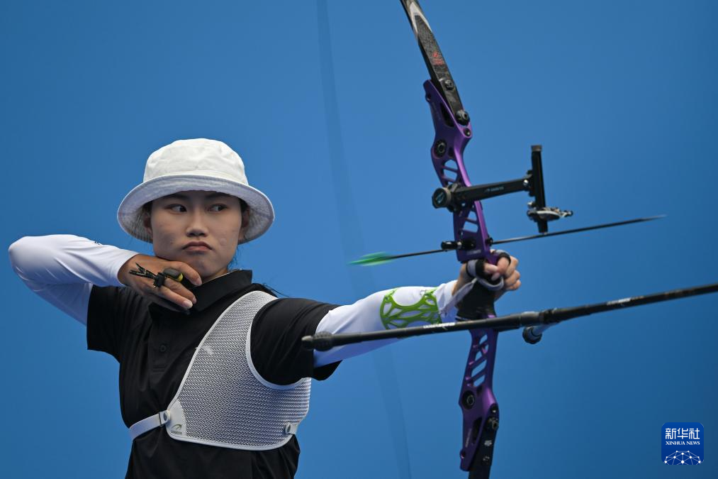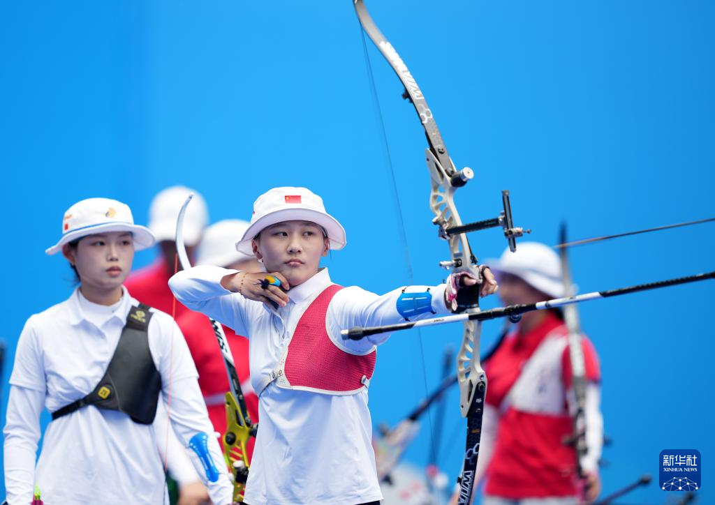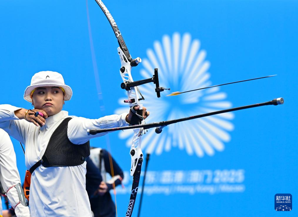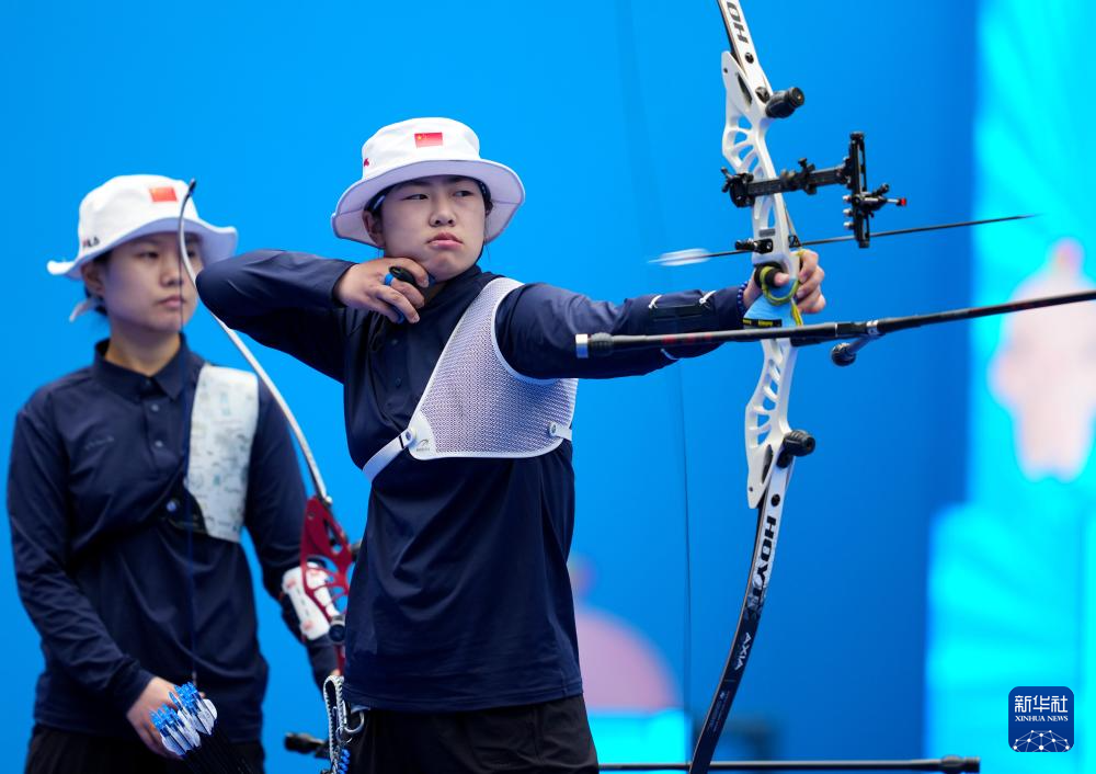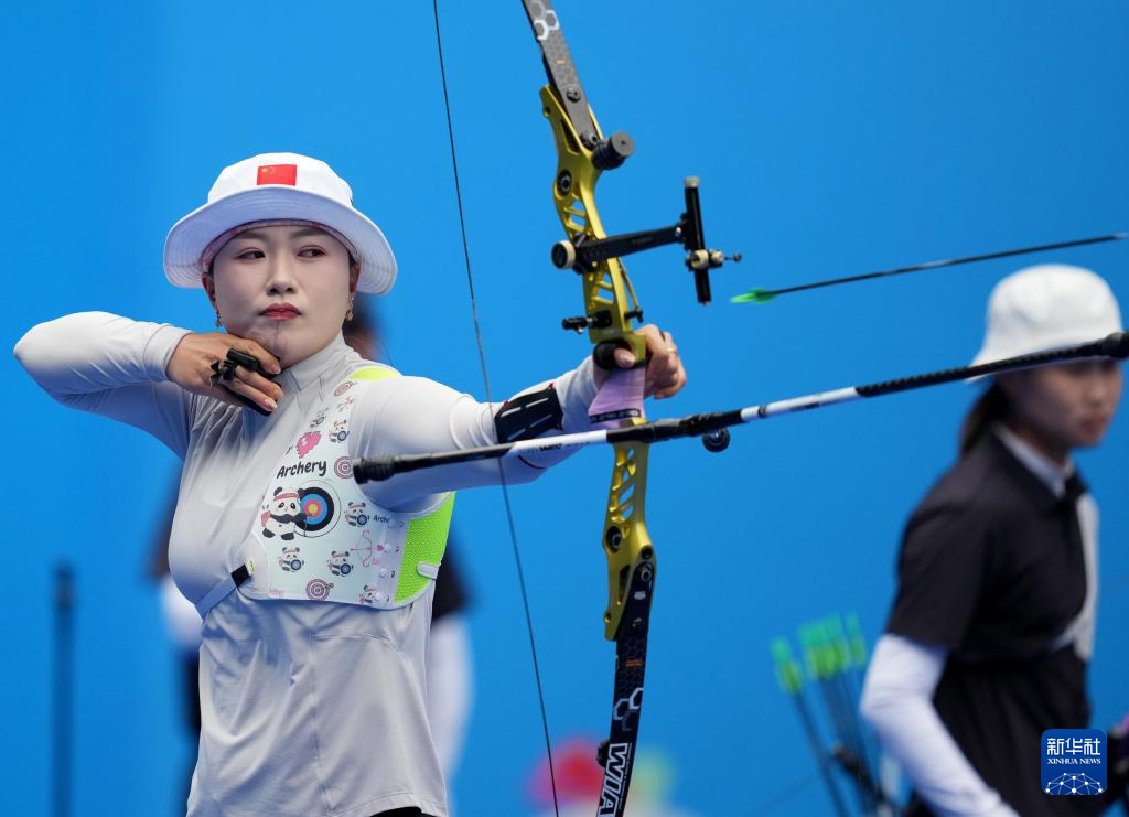 当日,第十五届全国运动会女子反曲弓团体四分之一决赛在深圳举行。