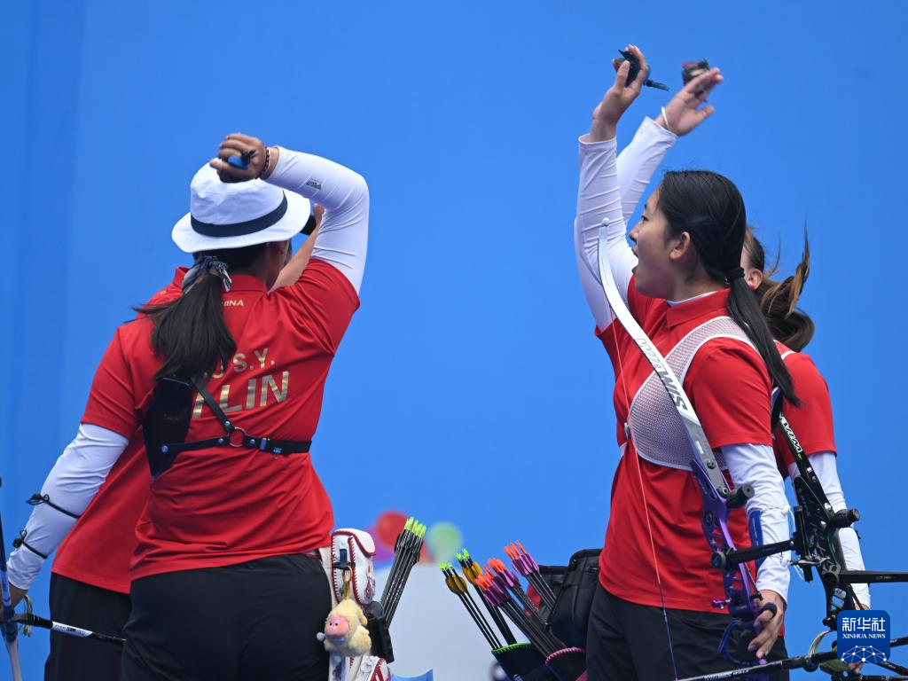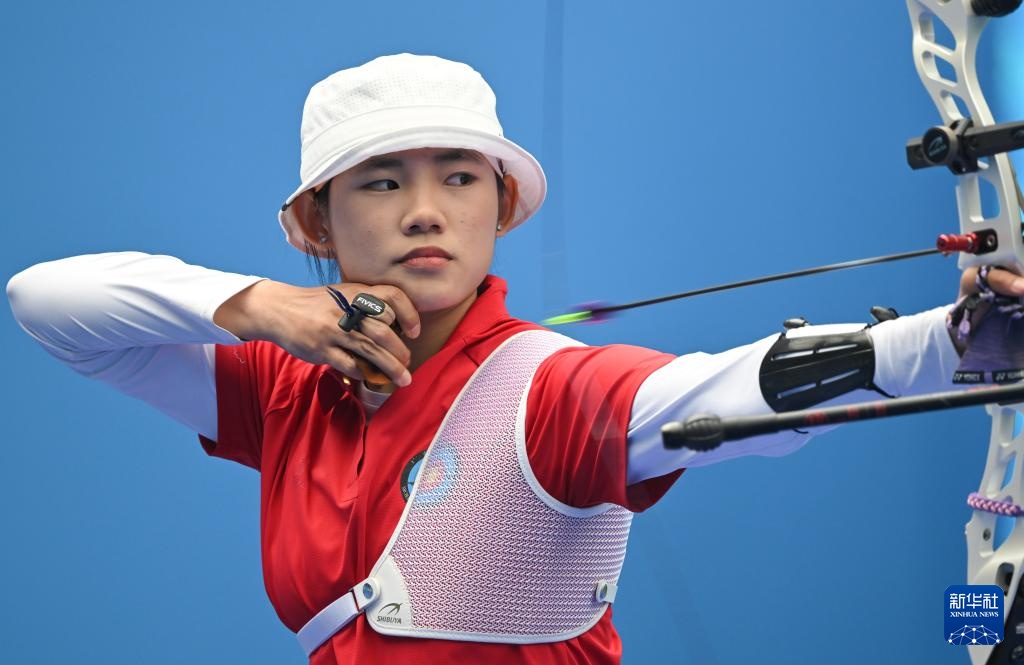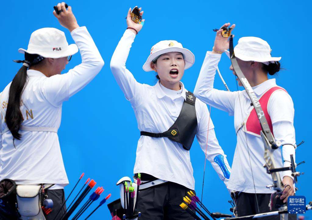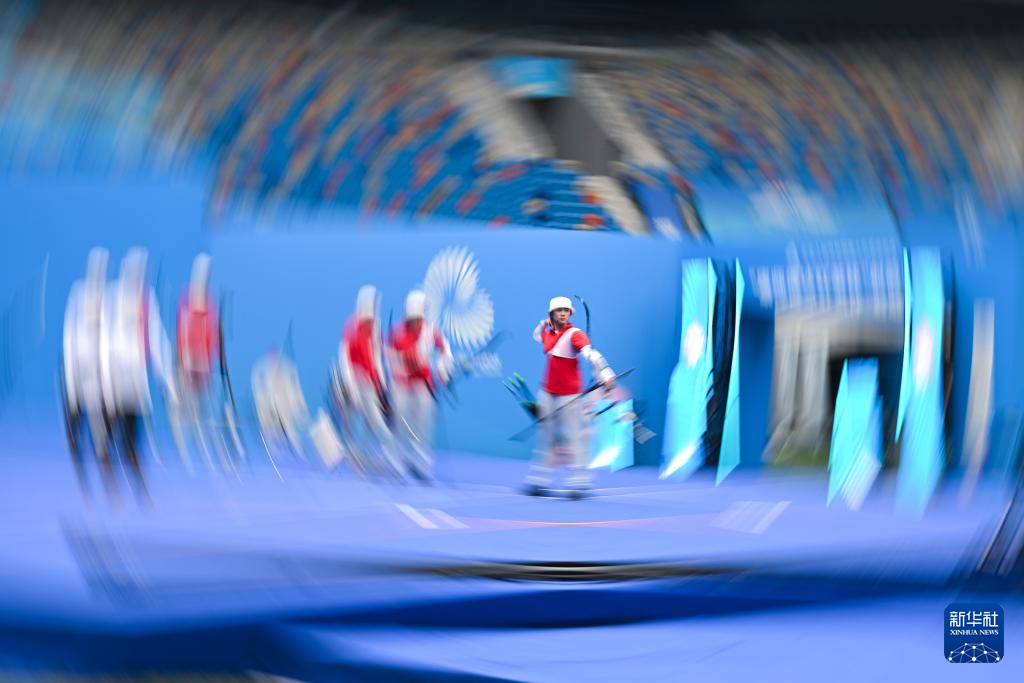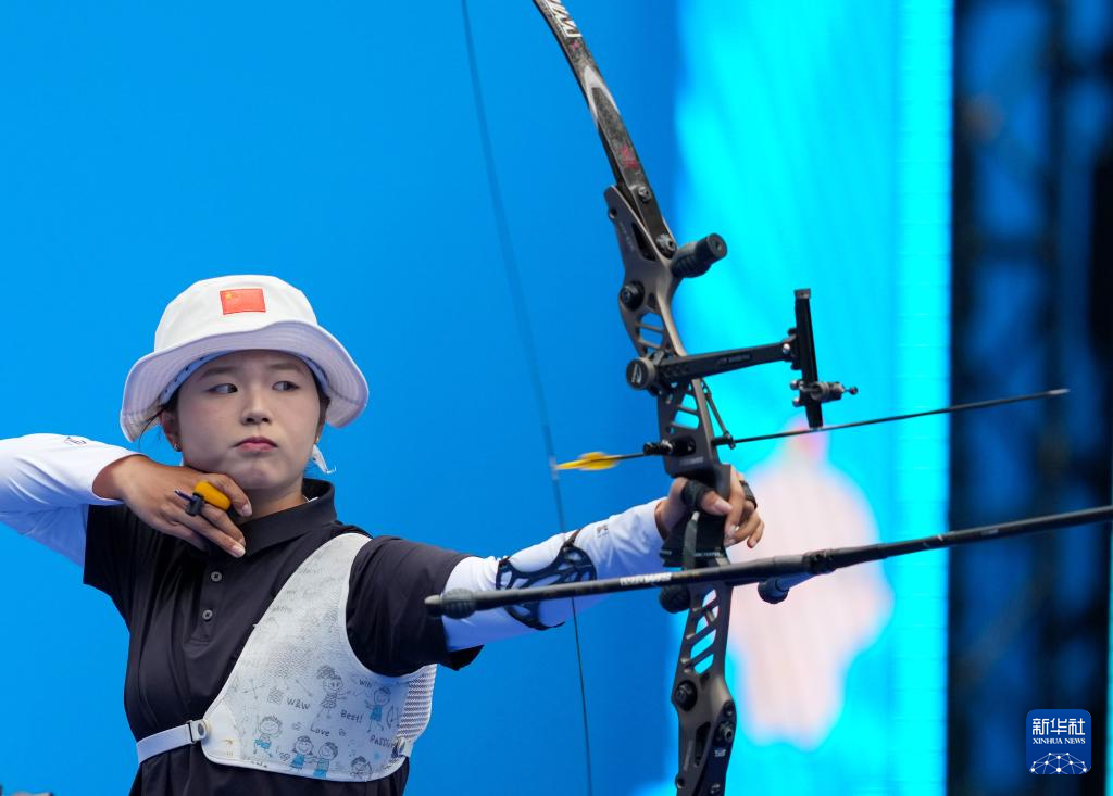 当日,第十五届全国运动会女子反曲弓团体四分之一决赛在深圳举行。