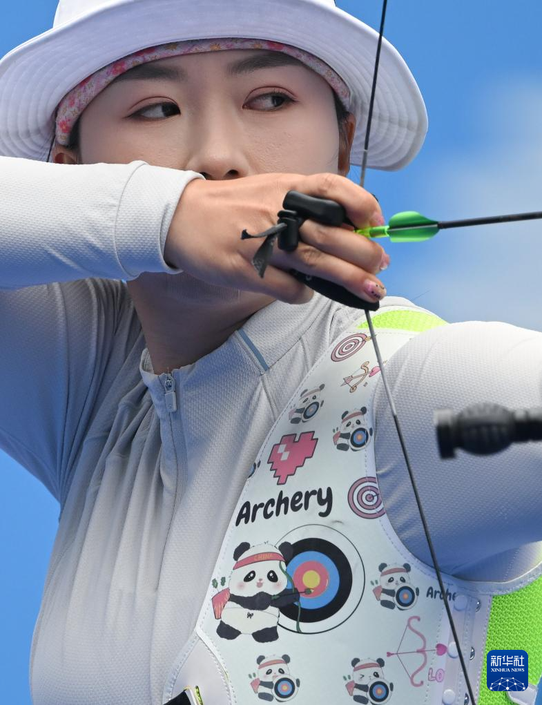 当日,第十五届全国运动会射箭女子反曲弓团体四分之一决赛在深圳举行。