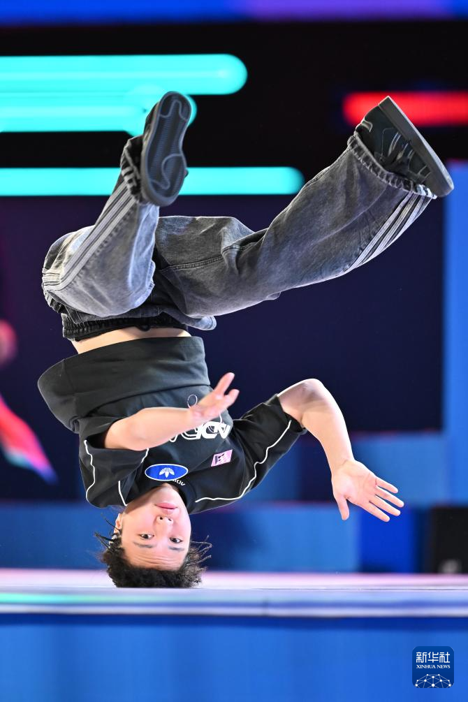 当日,第十五届全国运动会霹雳舞女子组半决赛在广州举行。
