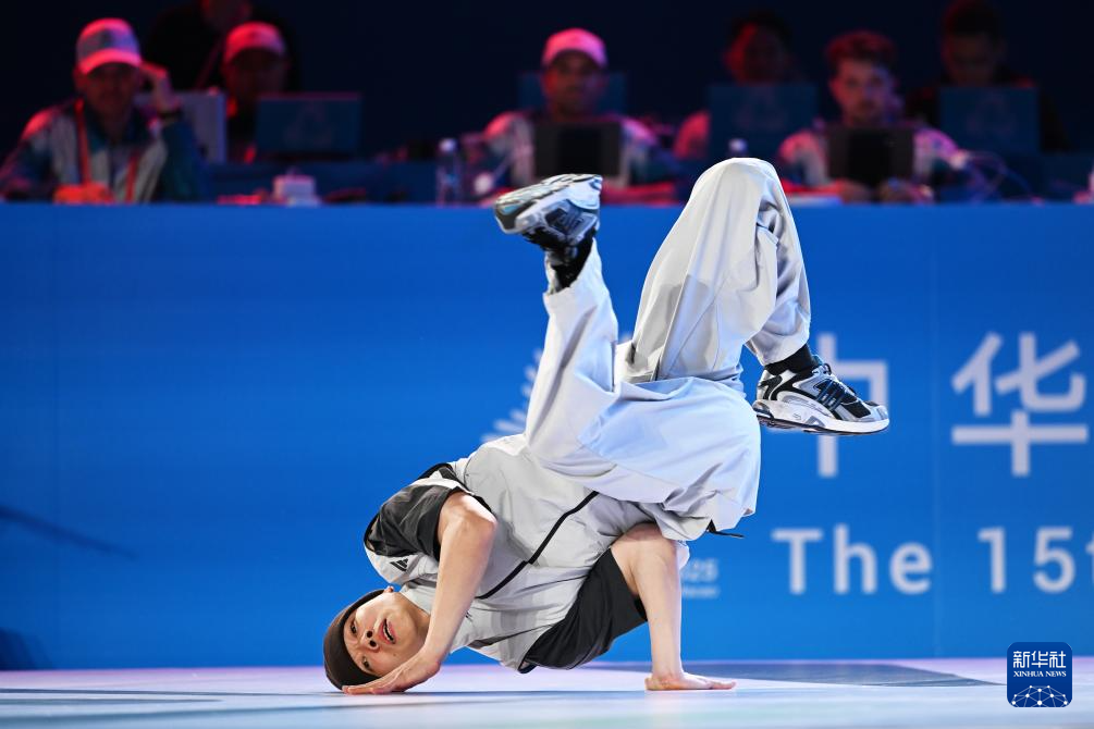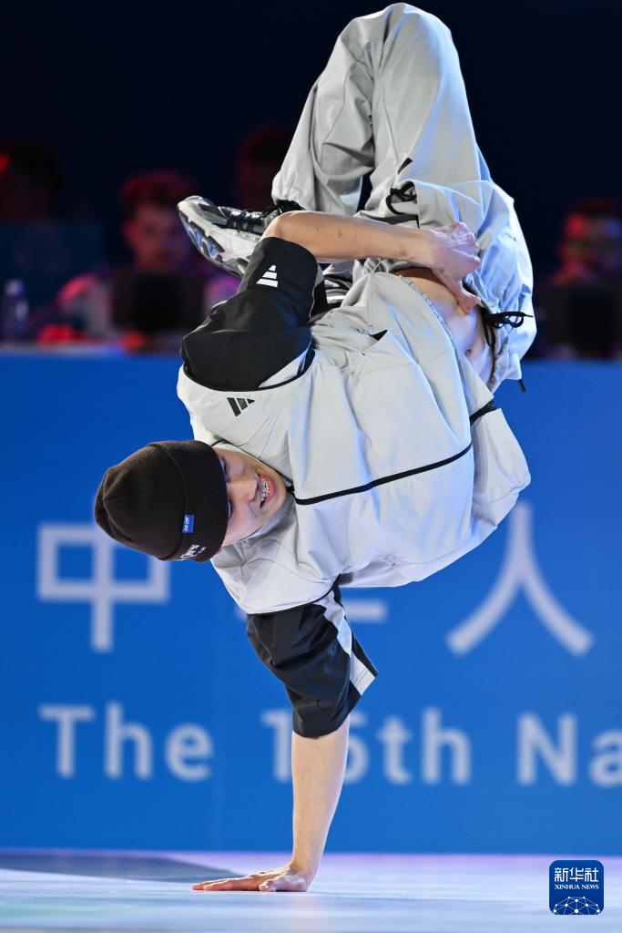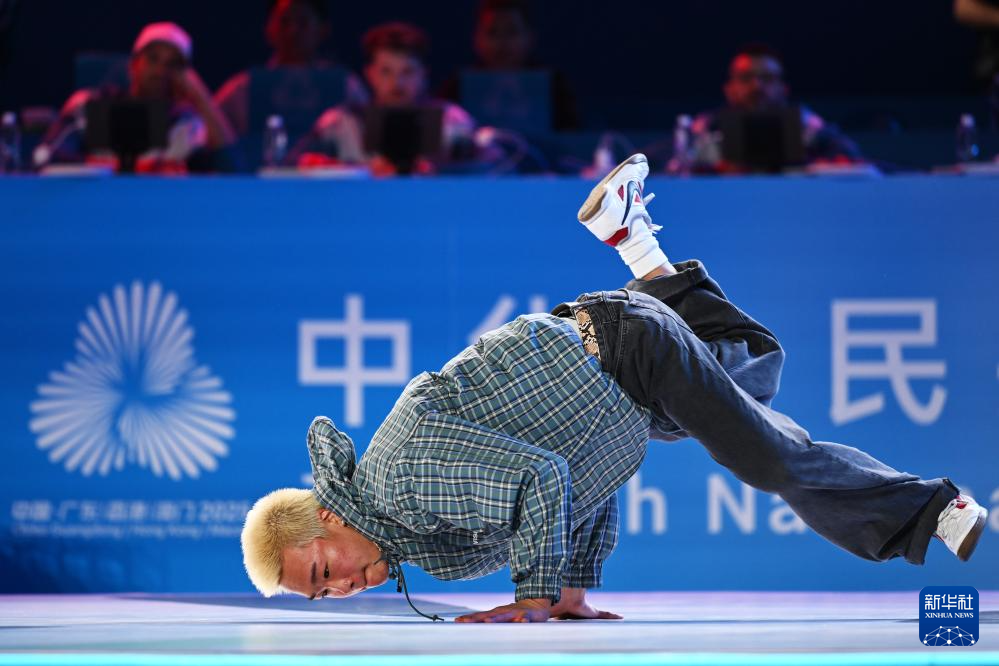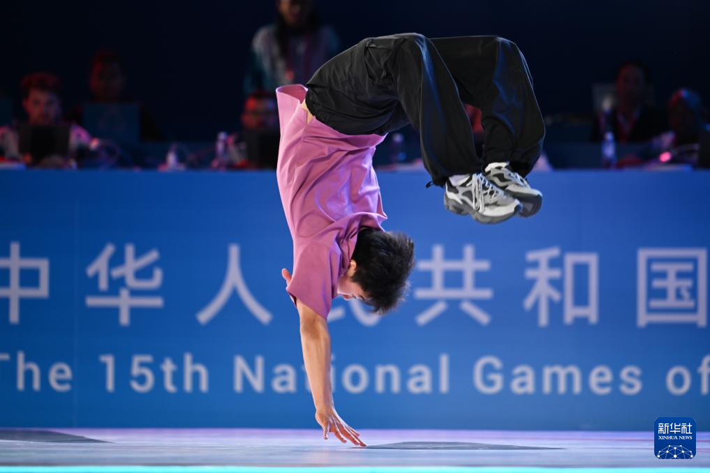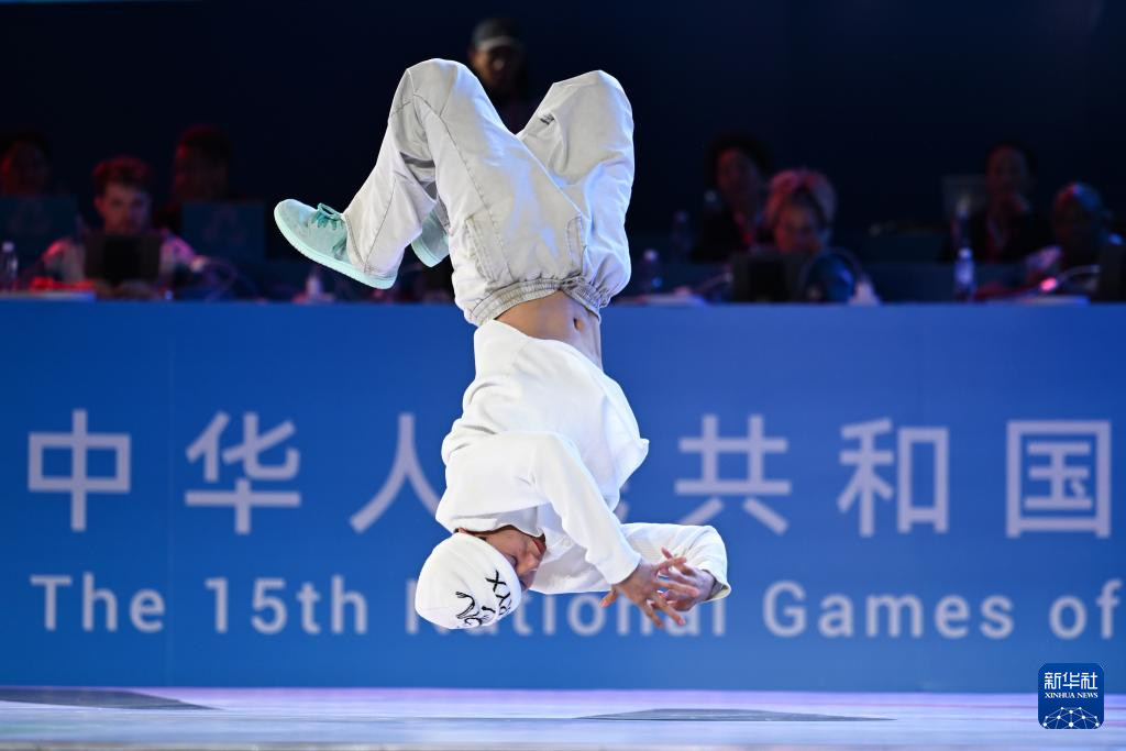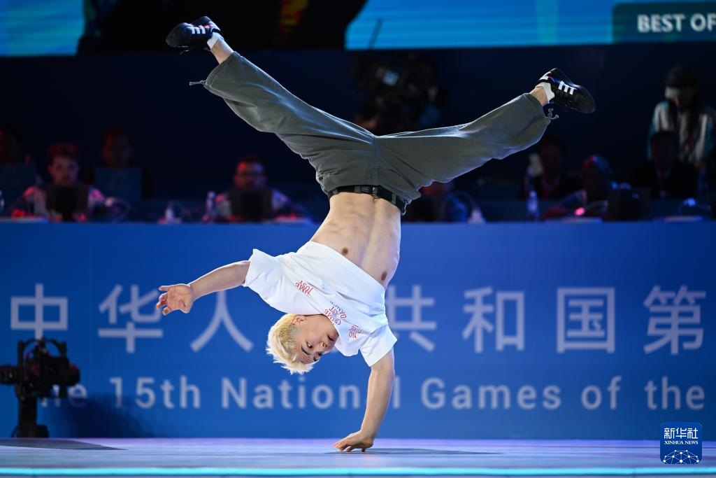 当日,第十五届全国运动会霹雳舞项目男子组淘汰赛在广州举行。