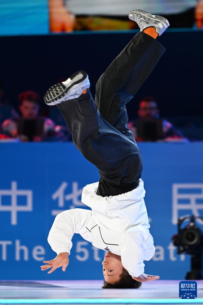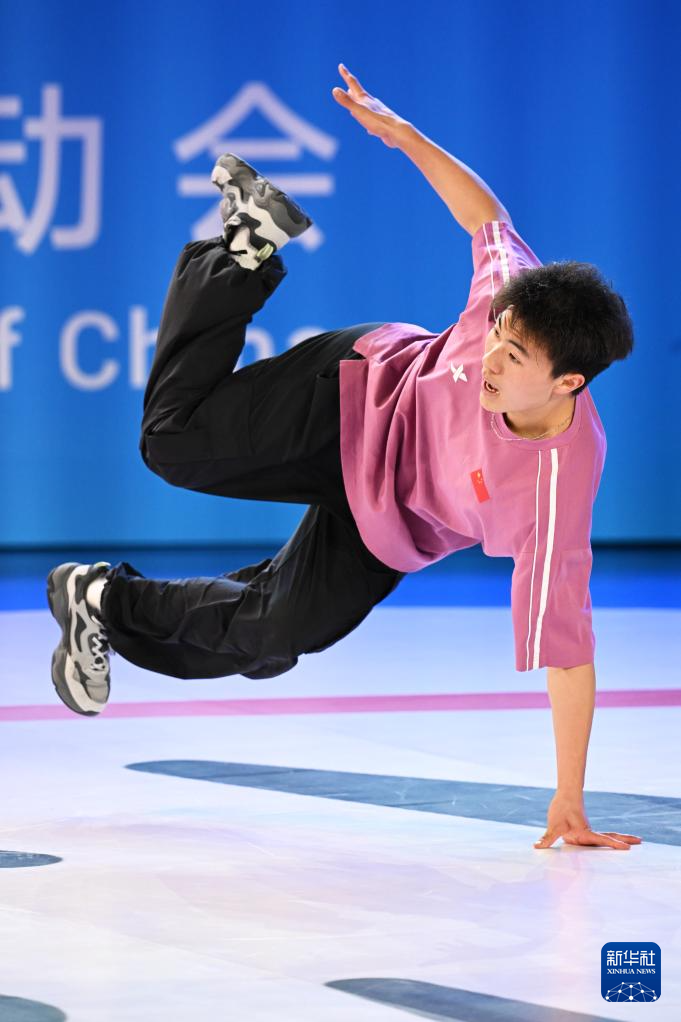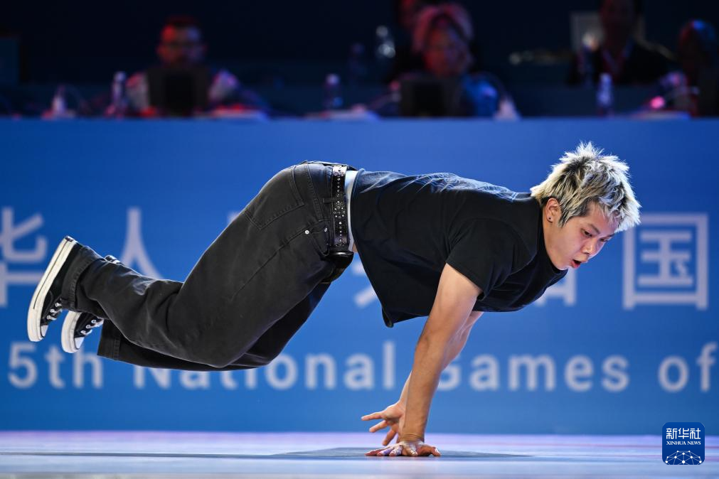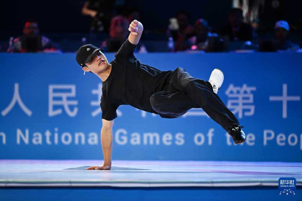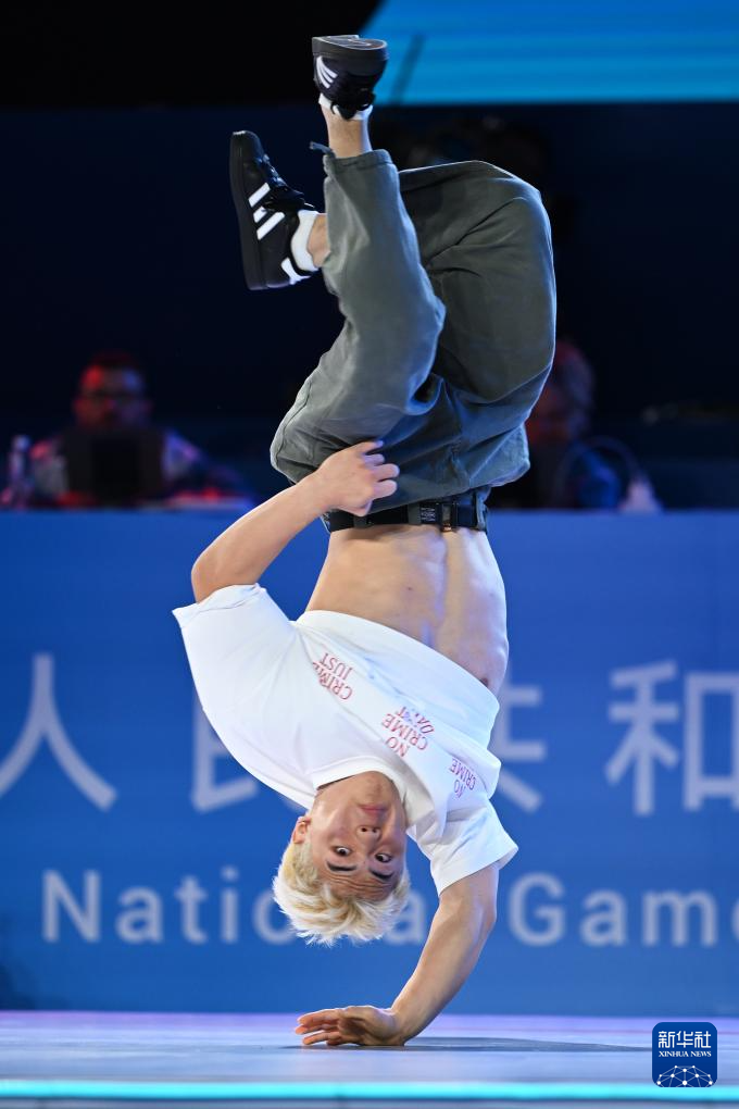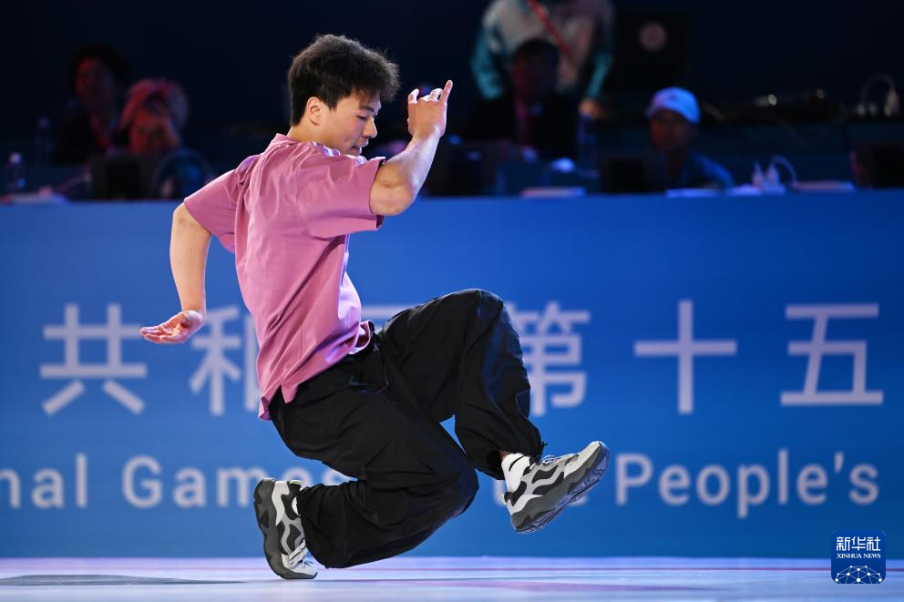 当日,第十五届全国运动会霹雳舞项目男子组淘汰赛在广州举行。