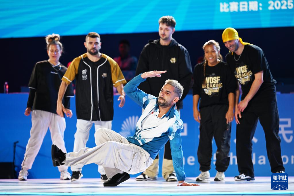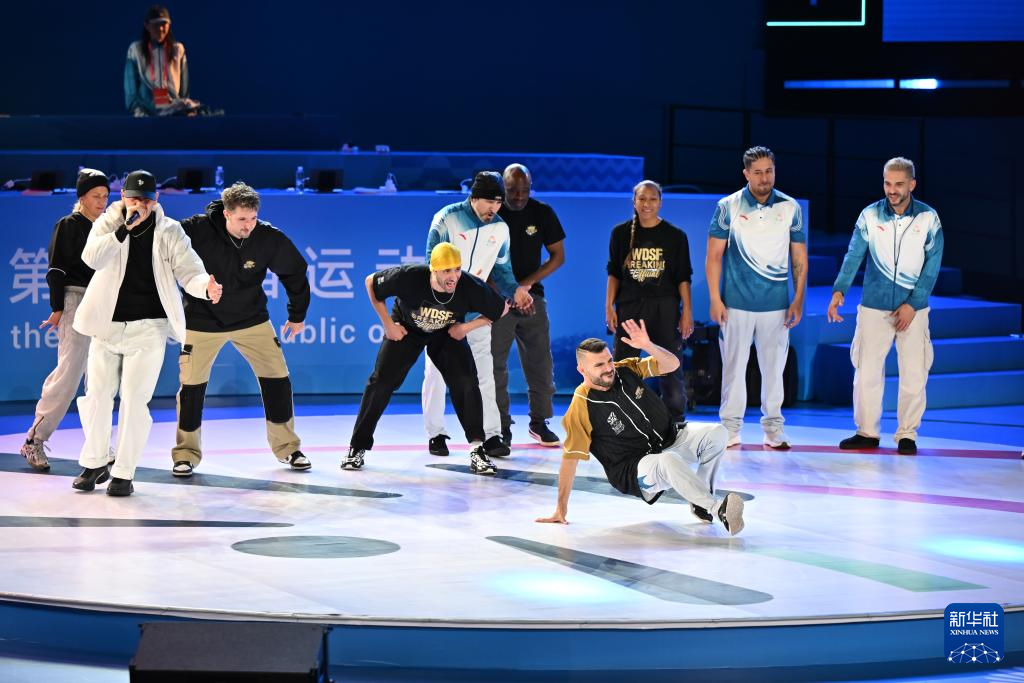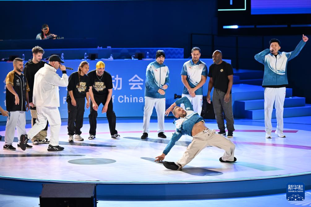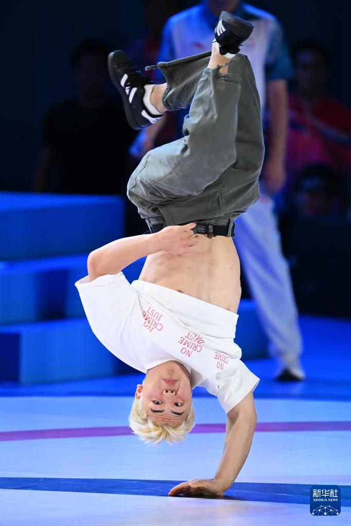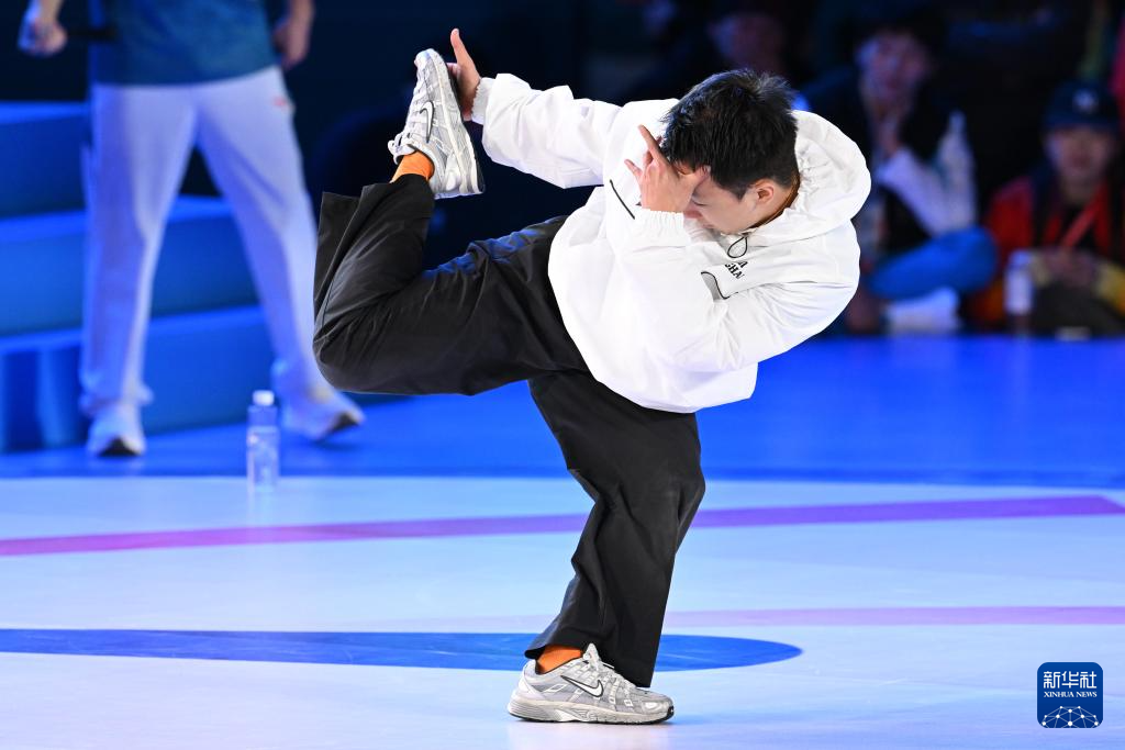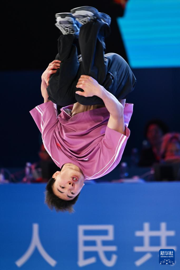 当日,第十五届全国运动会霹雳舞项目男子组淘汰赛在广州举行。