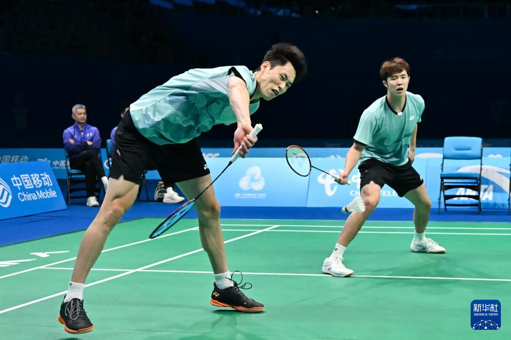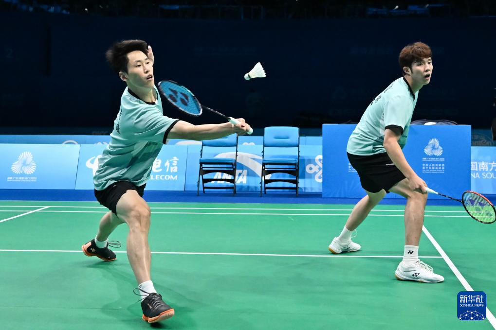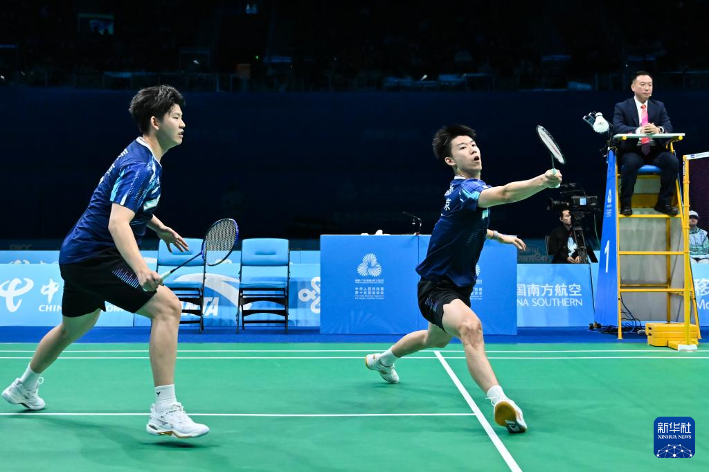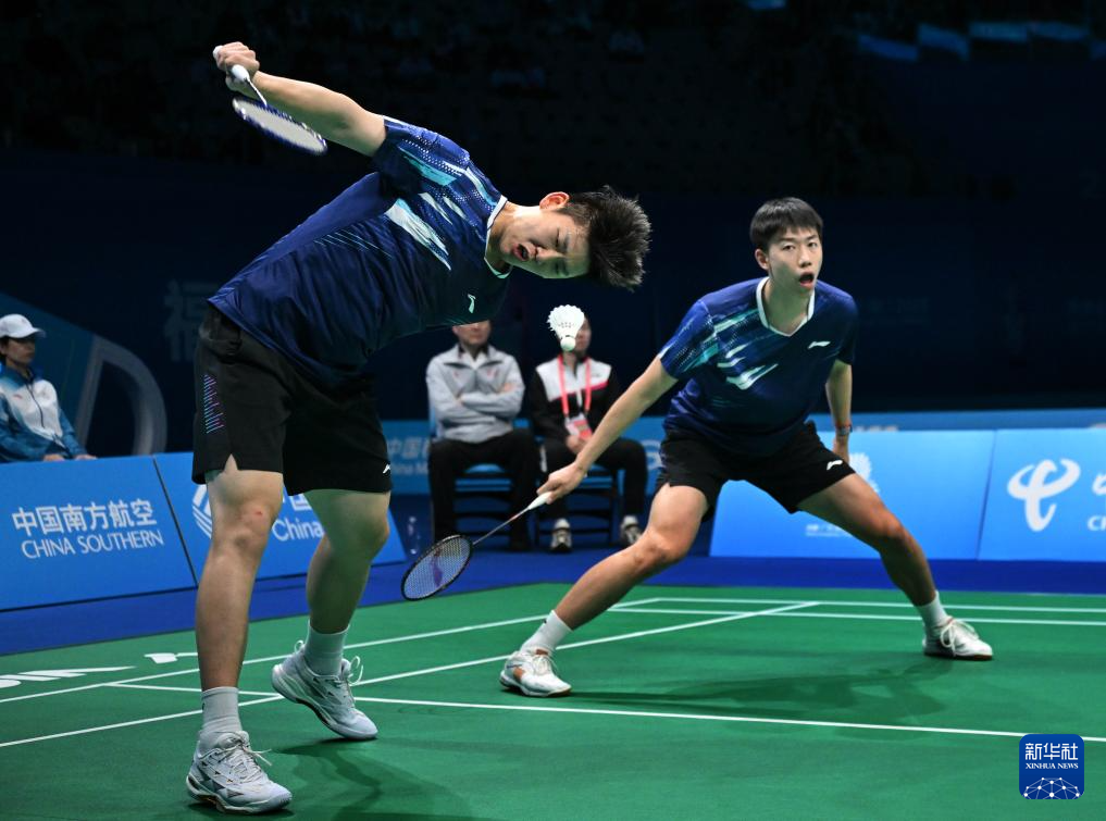 11月19日,福建队组合欧烜屹(右)/何济霆在比赛中。