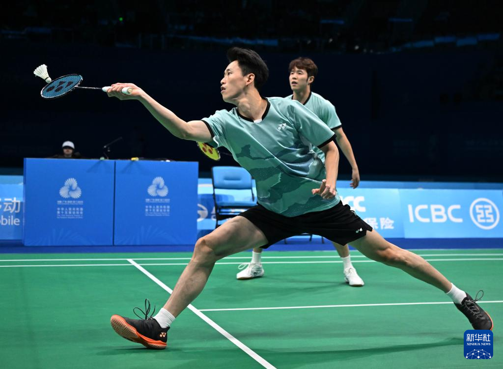 11月19日,福建队组合欧烜屹(左)/何济霆在比赛中。