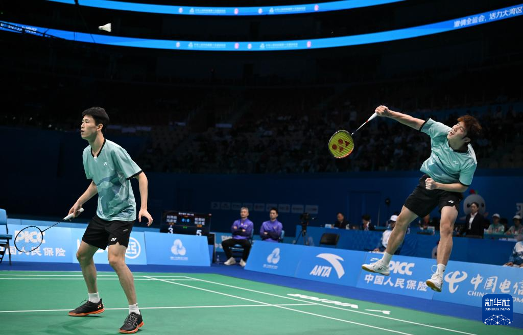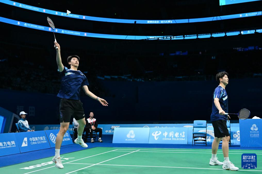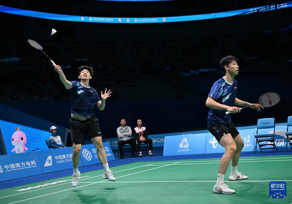11月19日,福建队组合欧烜屹/何济霆(右)在比赛中。